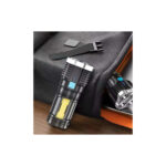 LINTERNA TECNOLAB CUATRO LED, CARGA USB, RESISTENTE A SALPICADURAS, LUZ LED OSL + COB, BATERIA DE LITIO. 500 LUMENES – 14 CM.
