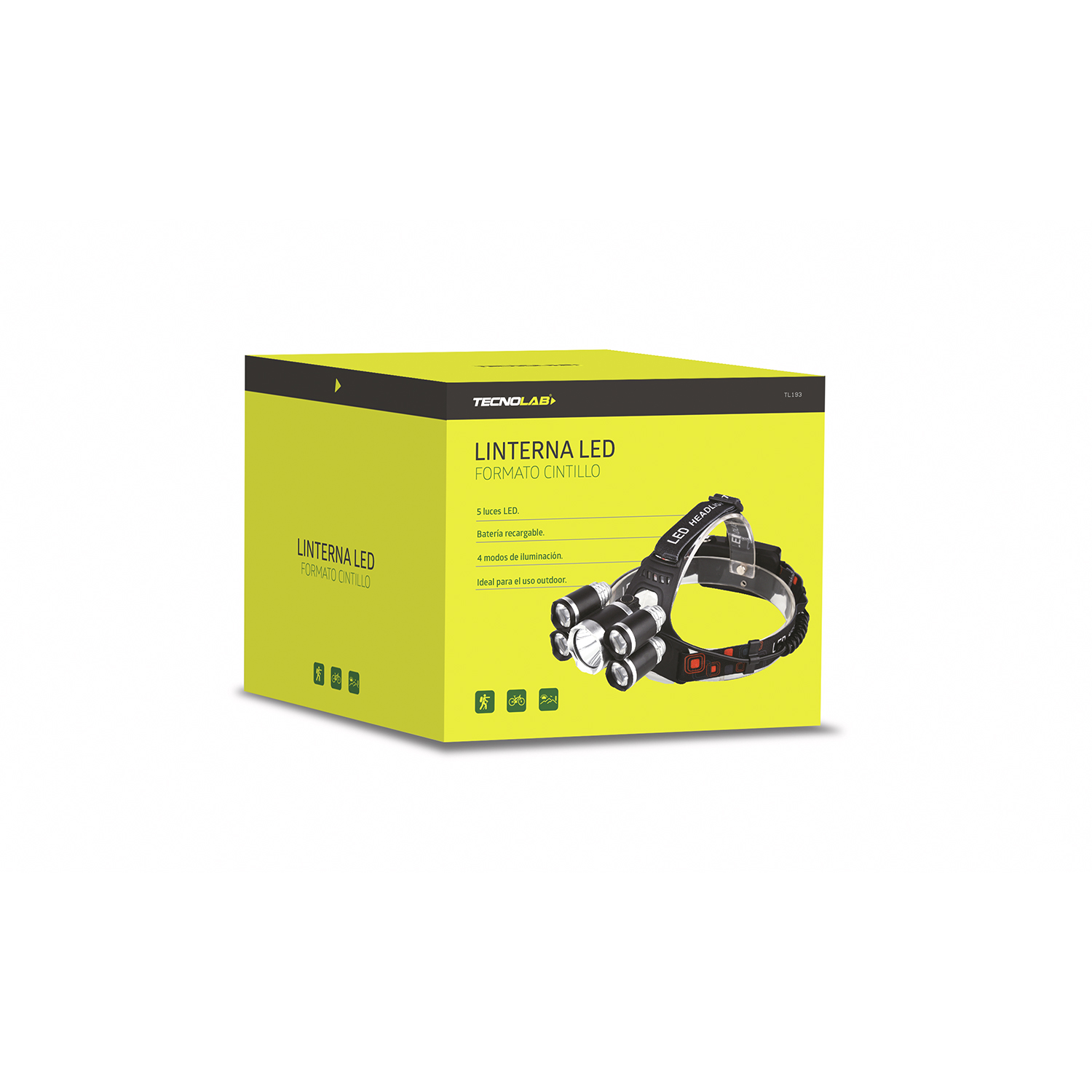 LINTERNA TECNOLAB LED 5 LUCES, BATERIA RECARGABLE, 4 MODOS, 2 BATERIAS 18650, 10.000 LM.