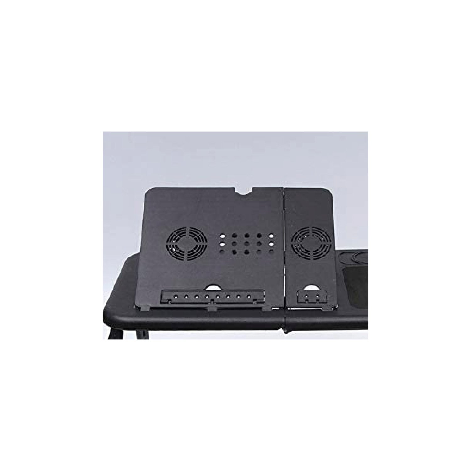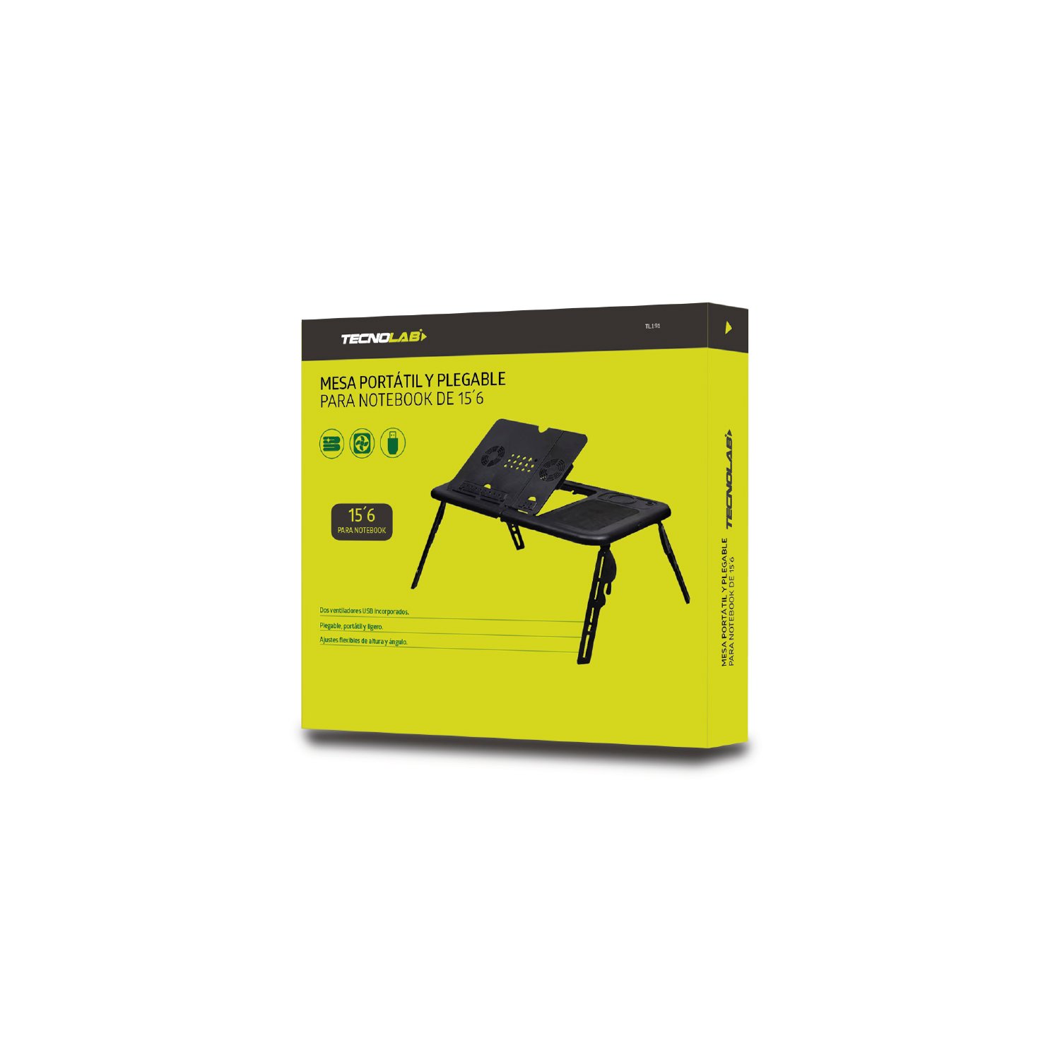 MESA PARA NOTEBOOK TECNOLAB, ANGULO AJUSTABLE 0-70°, APTA PARA PANTALLAS HASTA 15.6″, VENTILADORES USB, PLEGABLE, CON ALFOMBRILLA.