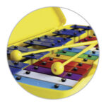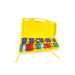 Metalófono 25 notas, placas aluminio, maleta plástica, 2 baquetas, sonido claro, color no detallado
