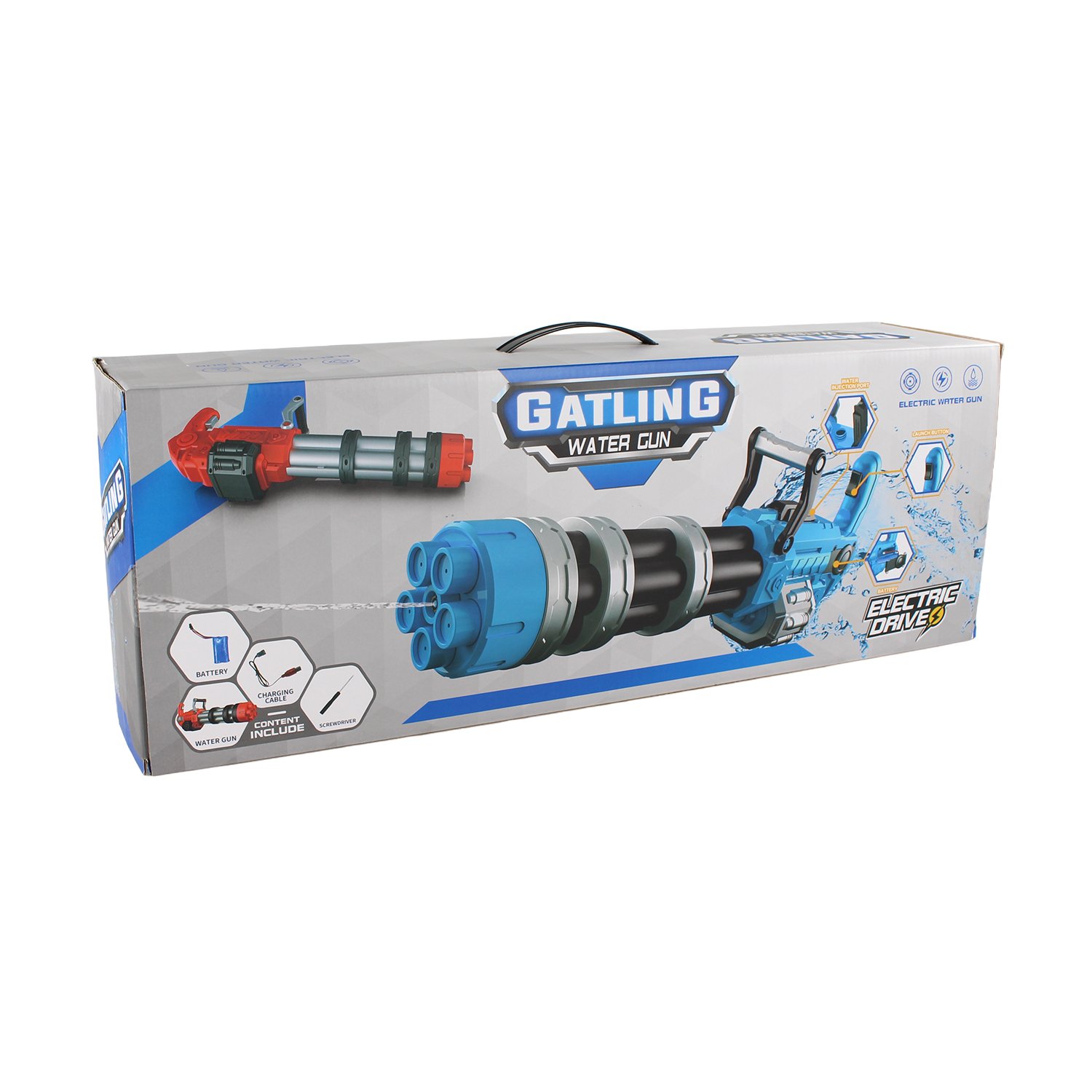 La Metralleta de Agua Eléctrica Gatling Blue es la opción definitiva para juegos acuáticos intensos y llenos de diversión. Con su diseño inspirado en una ametralladora Gatling, esta potente pistola eléctrica combina gran capacidad de agua, luces LED coloridas y una batería recargable de larga duración.
