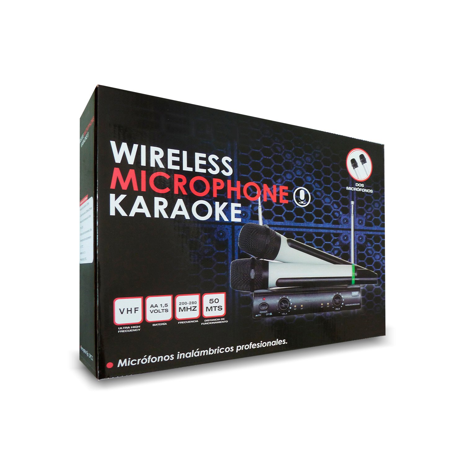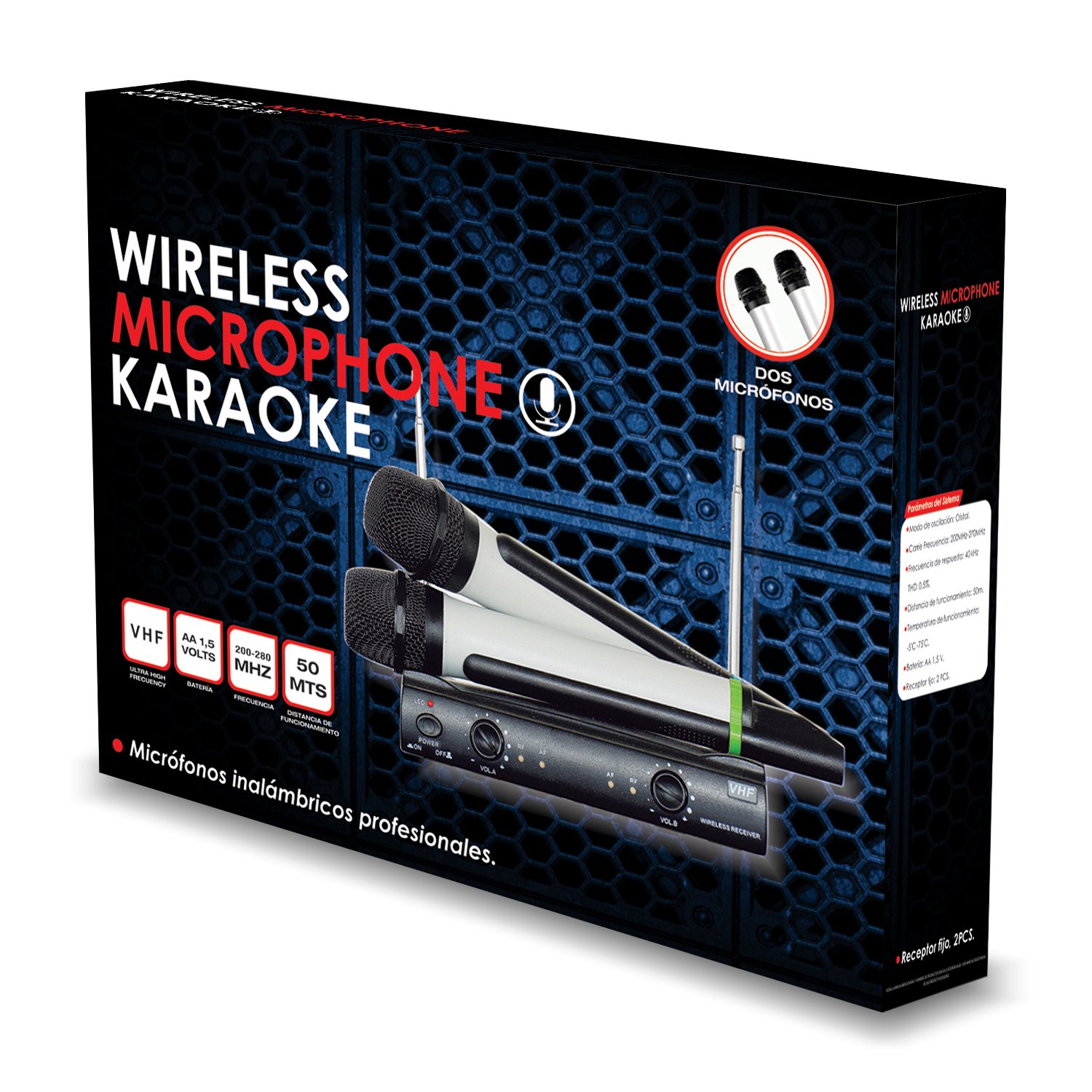 Kit de 2 micrófonos inalámbricos vhf alcanze 50mz, perfecto para aplicaciones de audio en vivo o grabación de audio, rango de alcance máximo de 50 metros, función de conexión múltiple, diseño ligero y portátil.