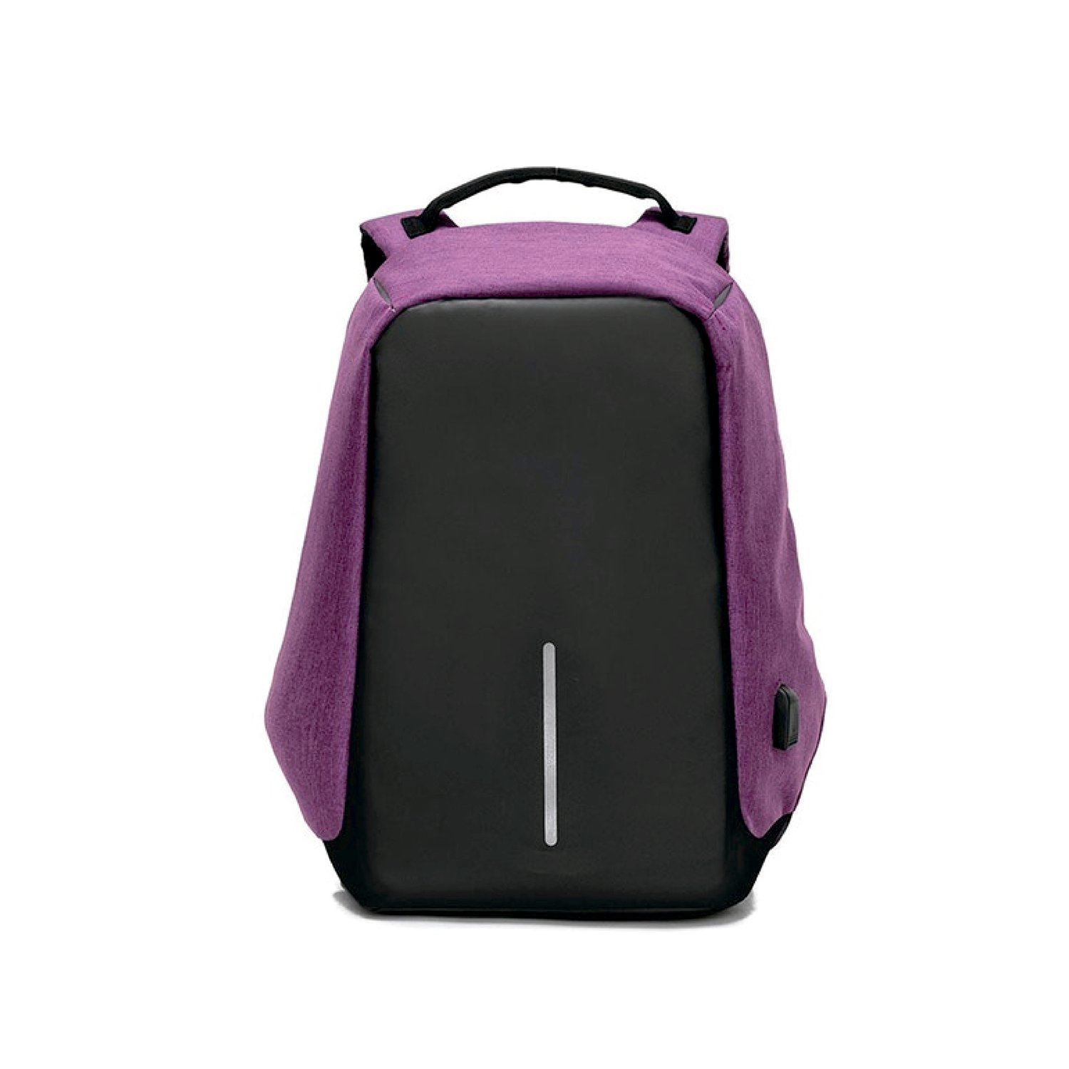 Mochila antirobo de color morado, ideal para actividades al aire libre y viajes. no especifica marca.