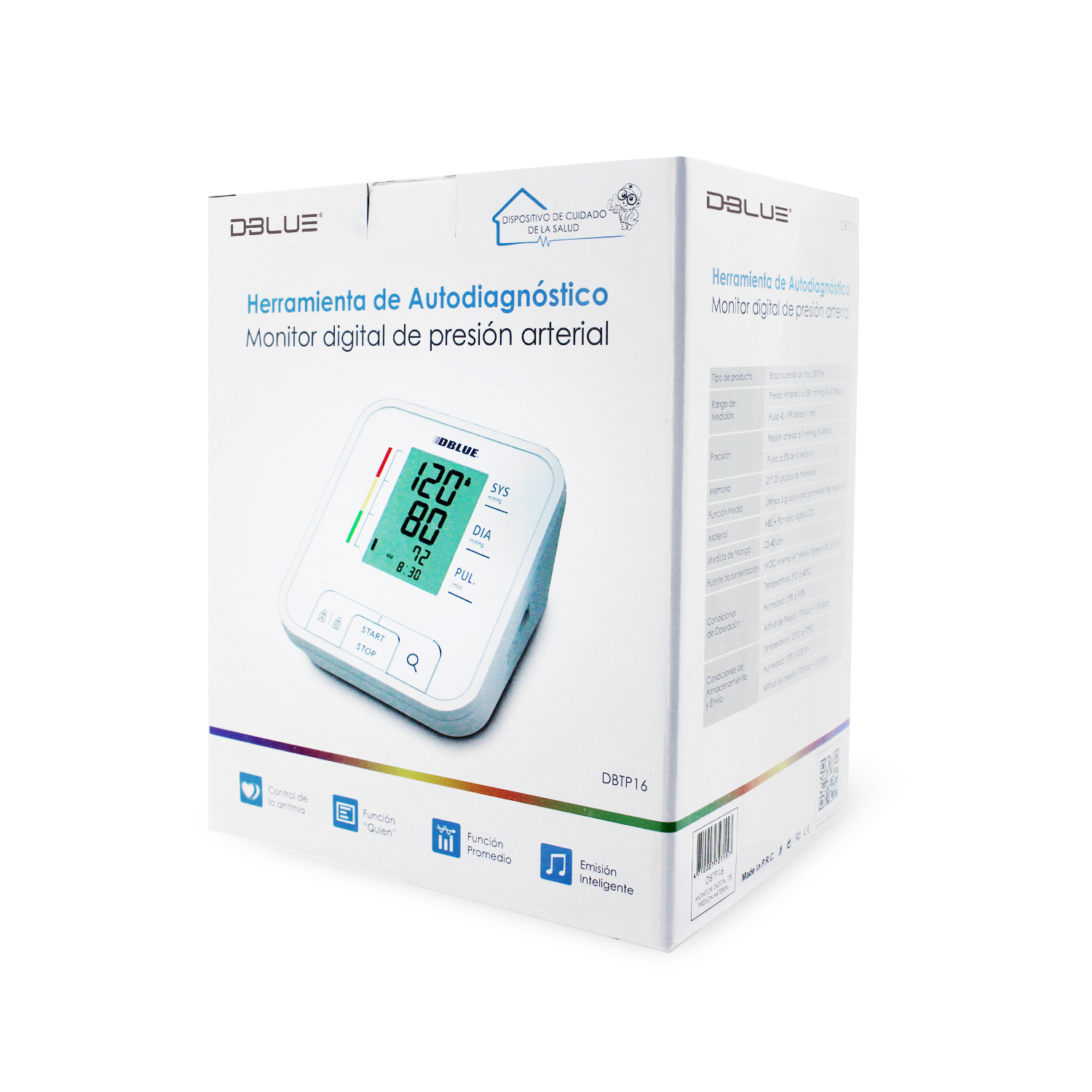 MONITOR DE PRESION ARTERIAL DBLUE, RANGO DE 0 A 280 MMHG, MEMORIA 2*120, PANTALLA LCD, CONTROL DE ARRITMIA.