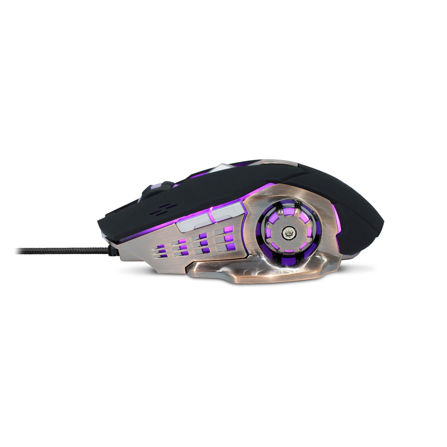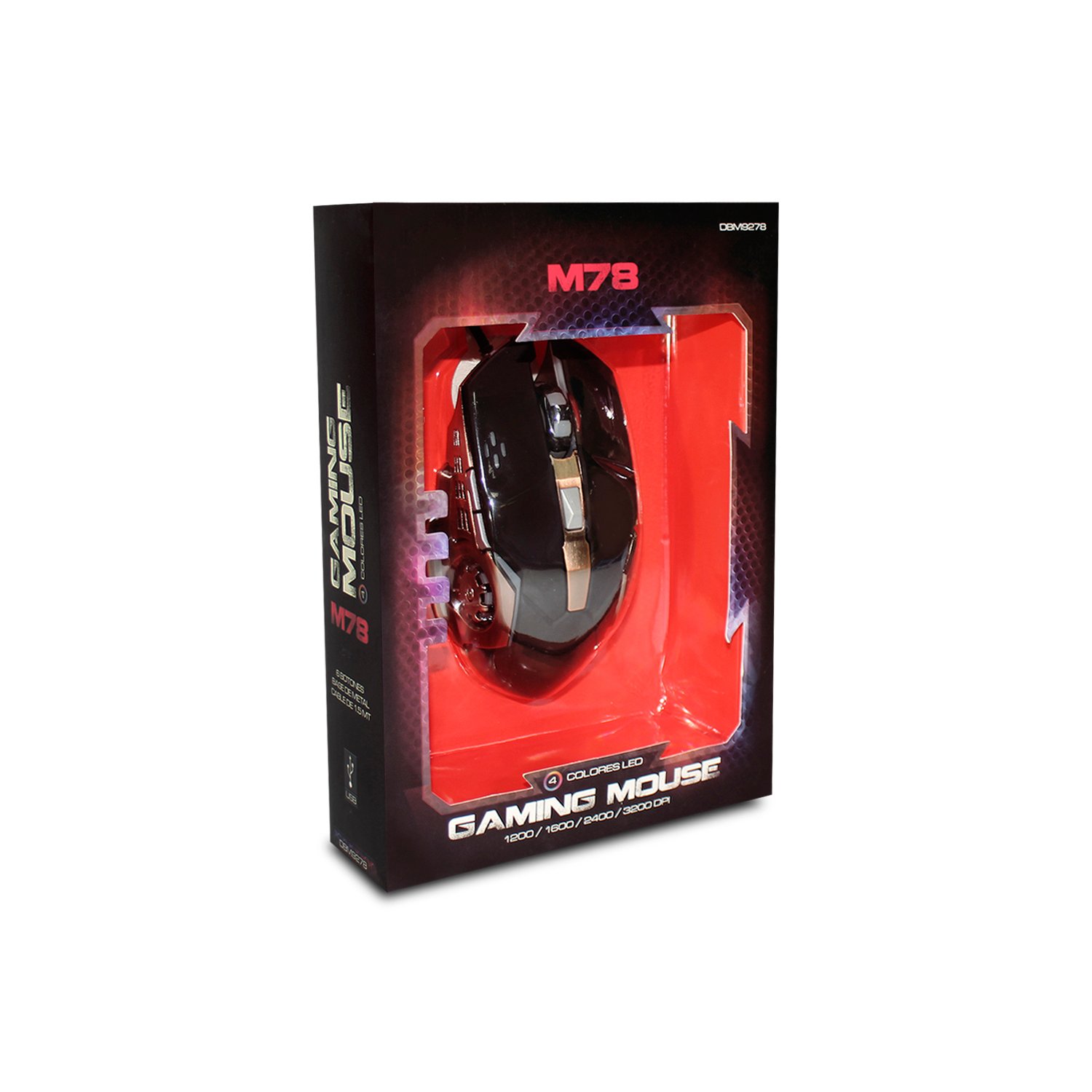 Gaming mouse de la marca dblue, con 6 botones y carcasa metálica. soporta resolución de hasta 3200 DPI. incluye luces LED con 4 colores para personalización. ideal para gamers que buscan un dispositivo preciso y confiable.