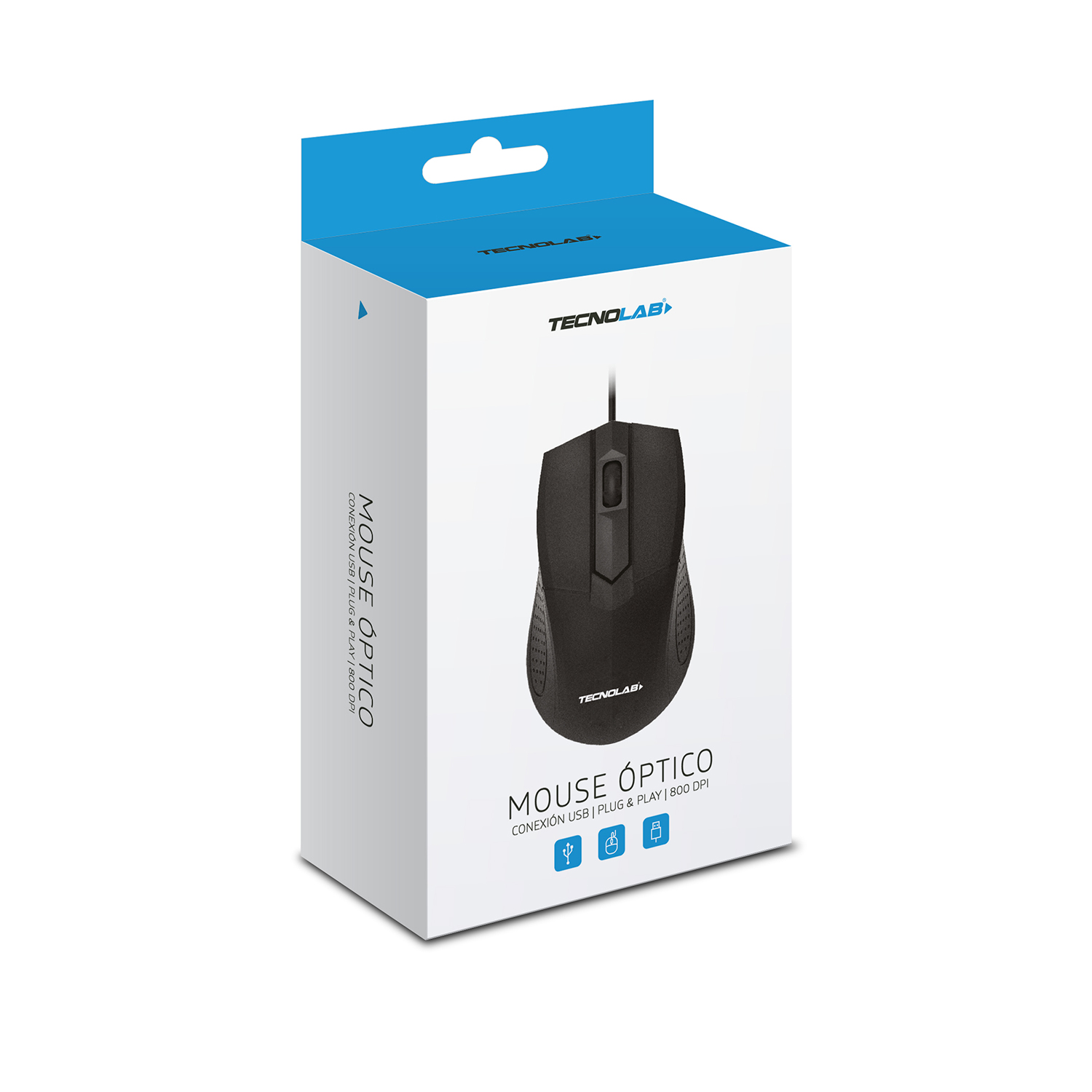 MOUSE USB, RESOLUCION 800 DPI, 3 BOTONES, DISEÑO AMBIDIESTRO, VIDA HASTA 2 MILLONES DE CLICKS, PLUG & PLAY.