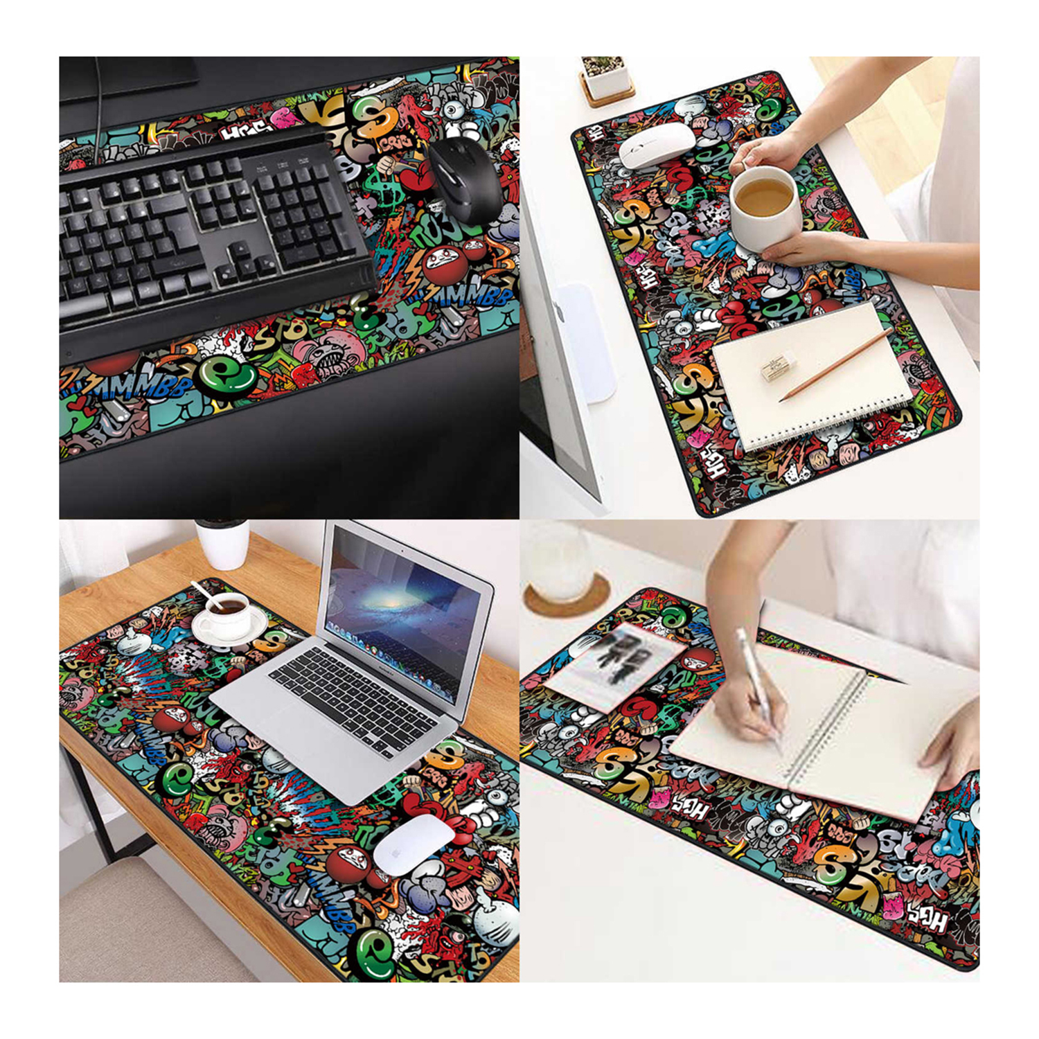 MOUSEPAD DBLUE GRAFFITI 900X400X2MM, SUPERFICIE SUAVE, ALTA ELASTICIDAD, GOMA ANTIDESLIZANTE, RESISTENTE A LIQUIDOS.