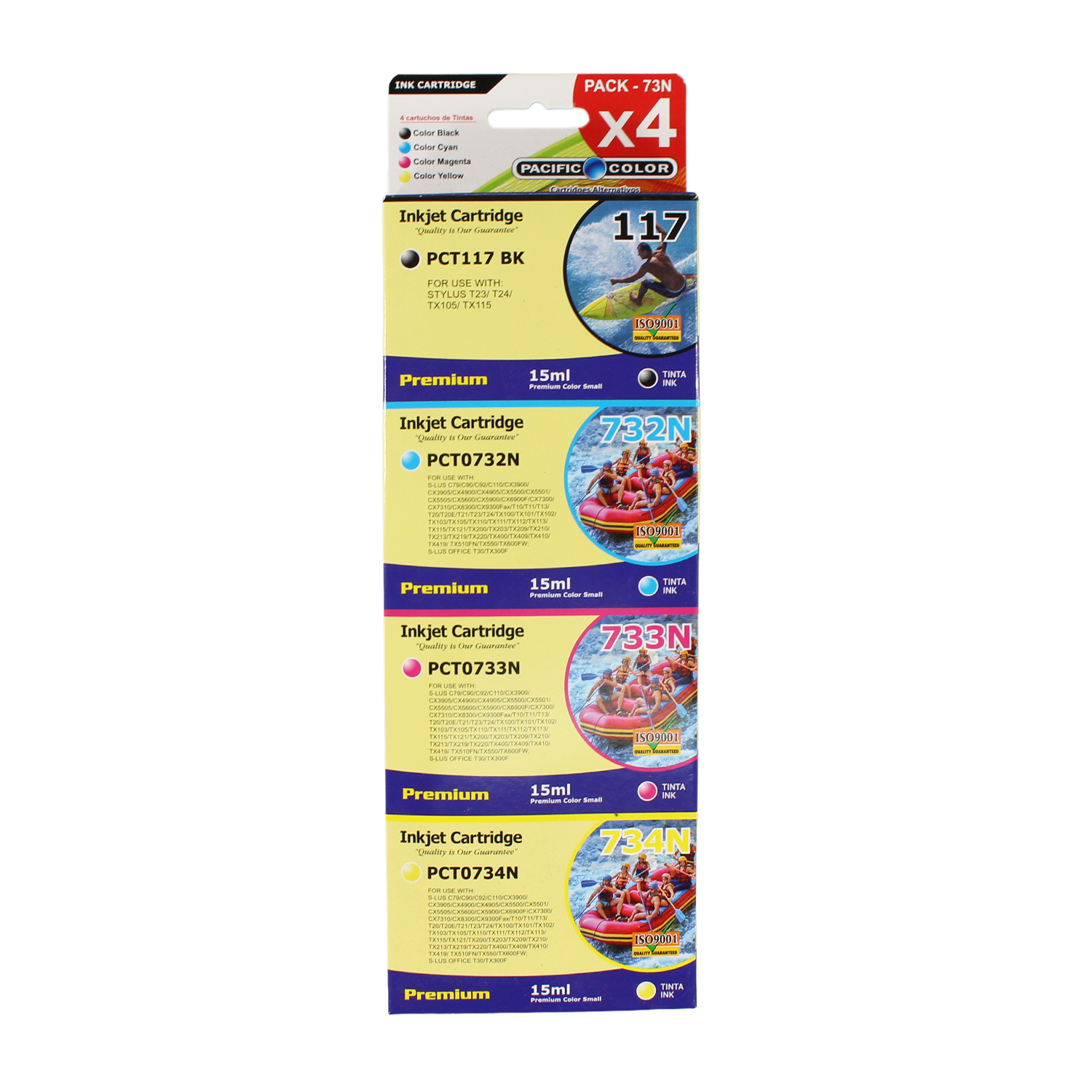 PACK CARTUCHO TINTA 4 COLORES PACIFIC COLOR EPSON 117/732N/733N/734N. 15ml