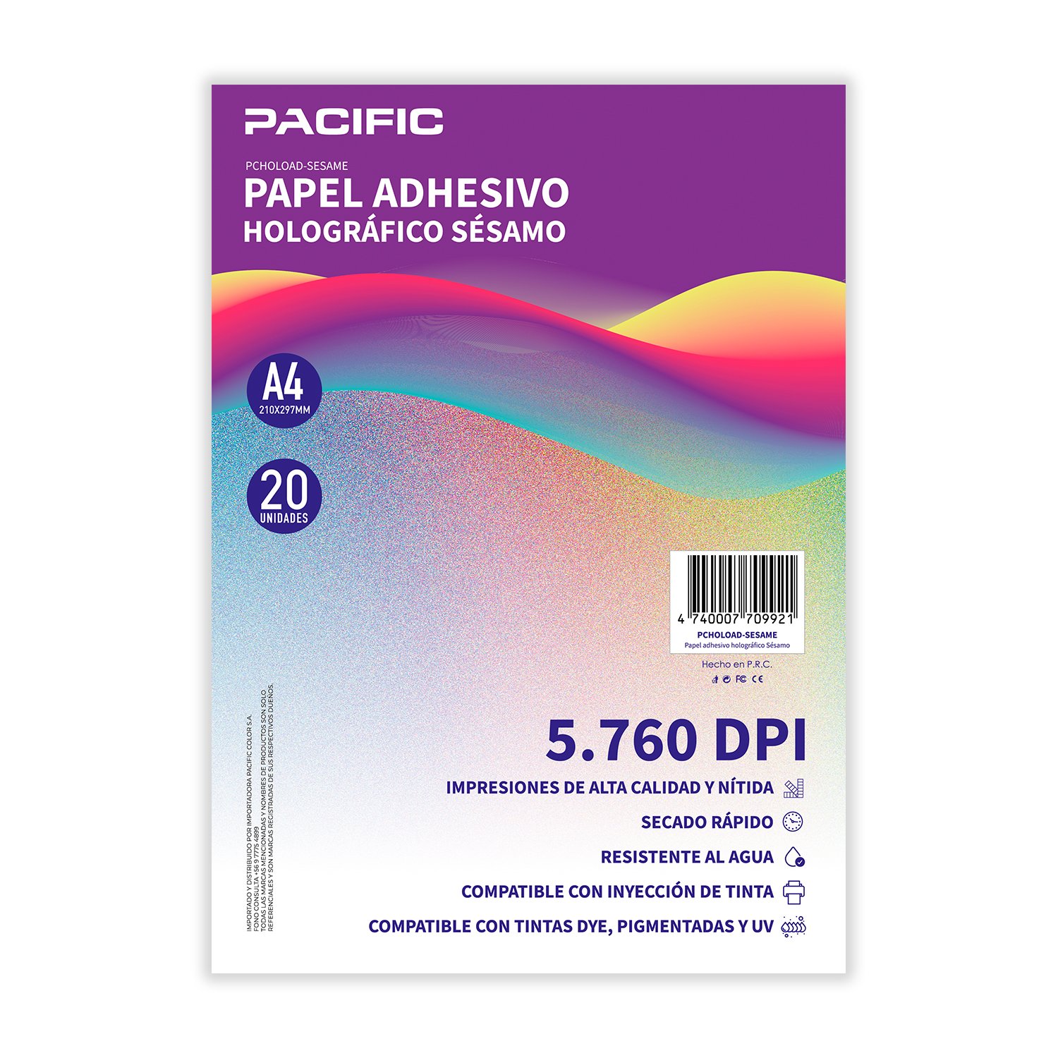 El papel adhesivo holográfico sésamo formato A4 es ideal para quienes buscan un acabado visual distintivo y profesional en sus impresiones. Su efecto holográfico tipo sésamo genera reflejos elegantes y dinámicos que aportan profundidad y atractivo a etiquetas, stickers, empaques personalizados y proyectos creativos.