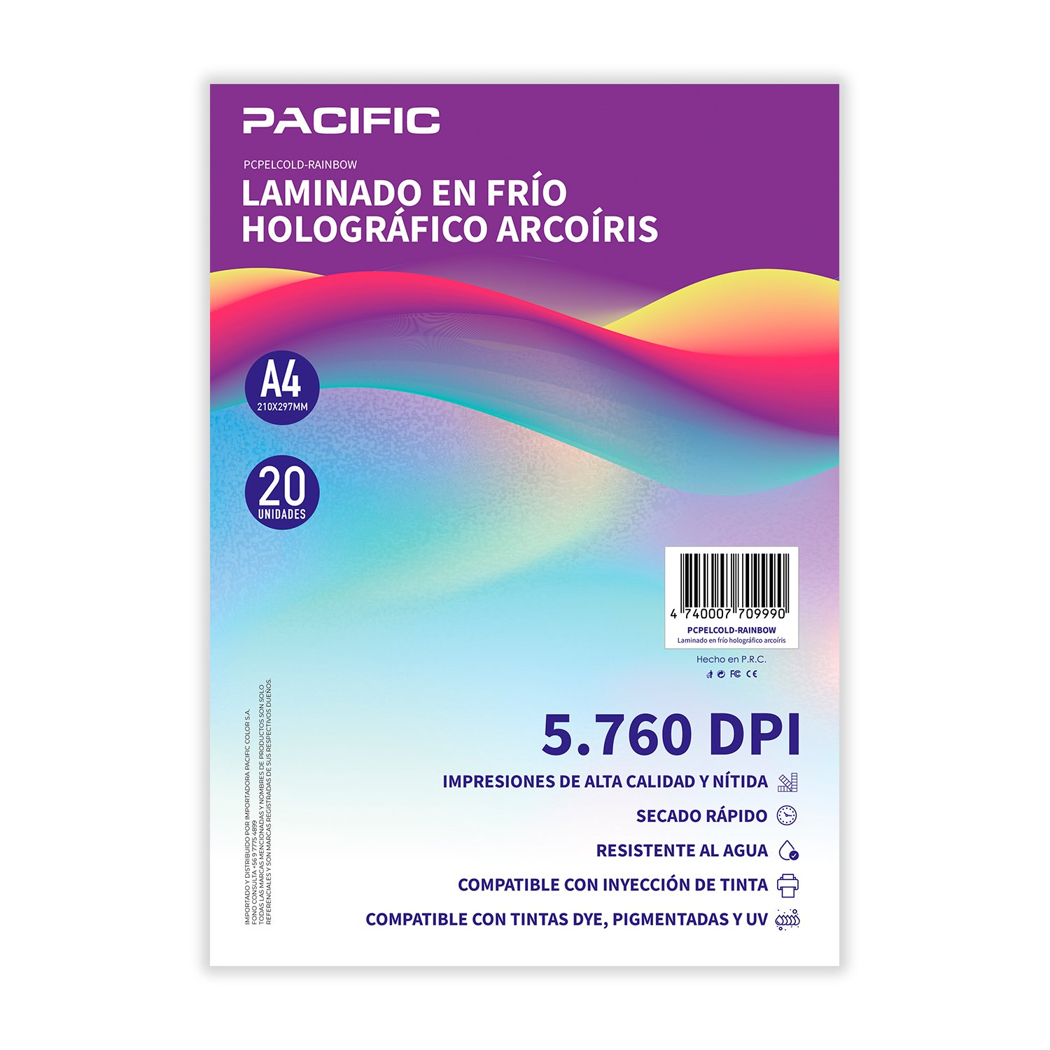 Este papel holográfico arcoíris para laminado en frío está diseñado para aportar un acabado visual impactante y moderno a todo tipo de impresiones. Su efecto holográfico multicolor genera reflejos dinámicos que cambian según la luz, realzando diseños gráficos, piezas promocionales, etiquetas, material publicitario, manualidades y proyectos creativos.