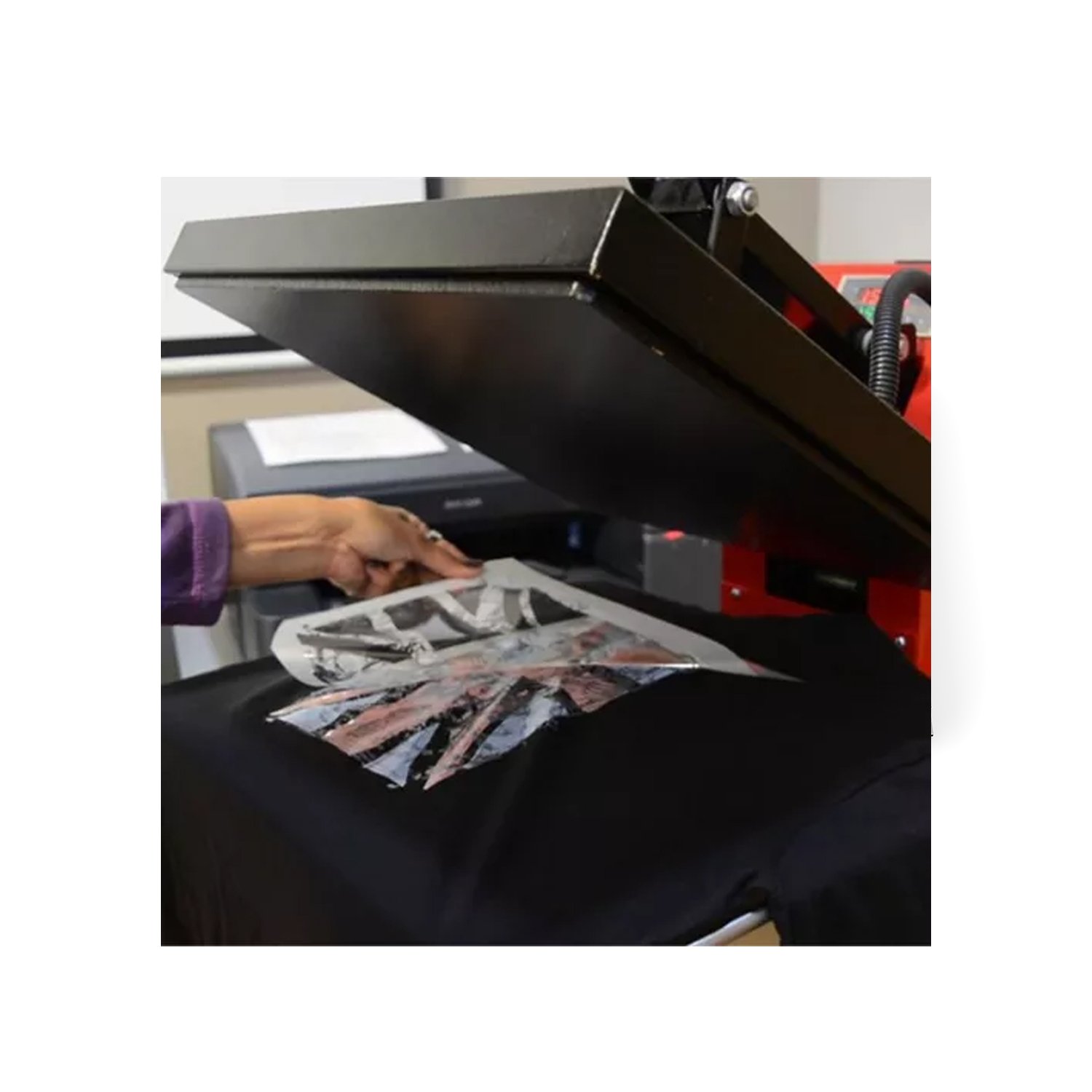 Papel especial para transferencias en textiles, ideal para personalizar prendas con diseños únicos.