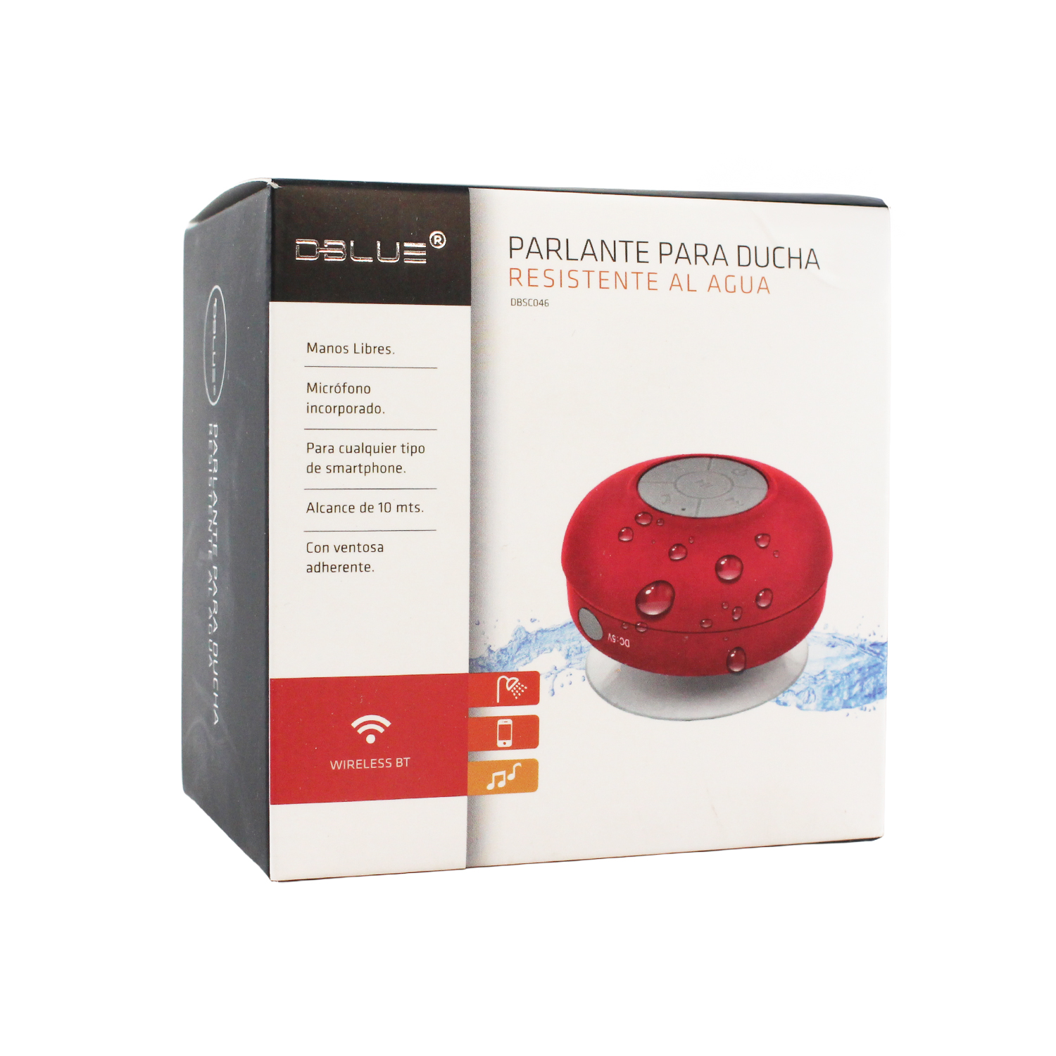 PARLANTE DBLUE BT PARA DUCHA, RESISTENTE AL AGUA, VENTOSA, MANOS LIBRES, 3W, BATERIA DE LITIO, ALCANCE 10M. RED