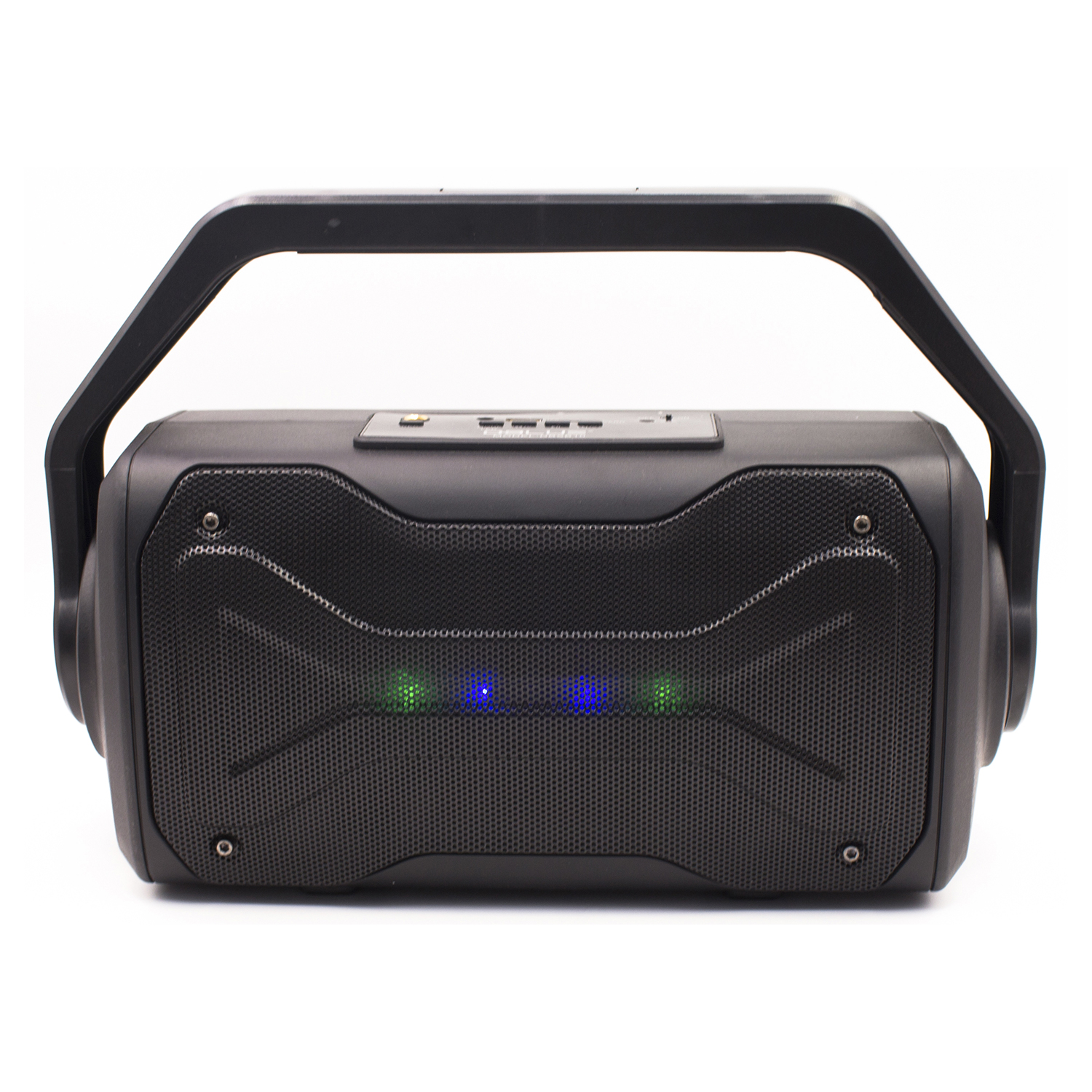 Parlante portátil dblue con luces de color, bluetooth, USB y SD/FM radio/aux. tiene una potencia de 20W. inalámbrico con bluetooth y conexión a través de radio FM. conexión auxiliar mediante puerto 3.5mm. admite almacenamiento externo mediante microsd. puede reproducir contenido desde dispositivos conectados a través del USB.