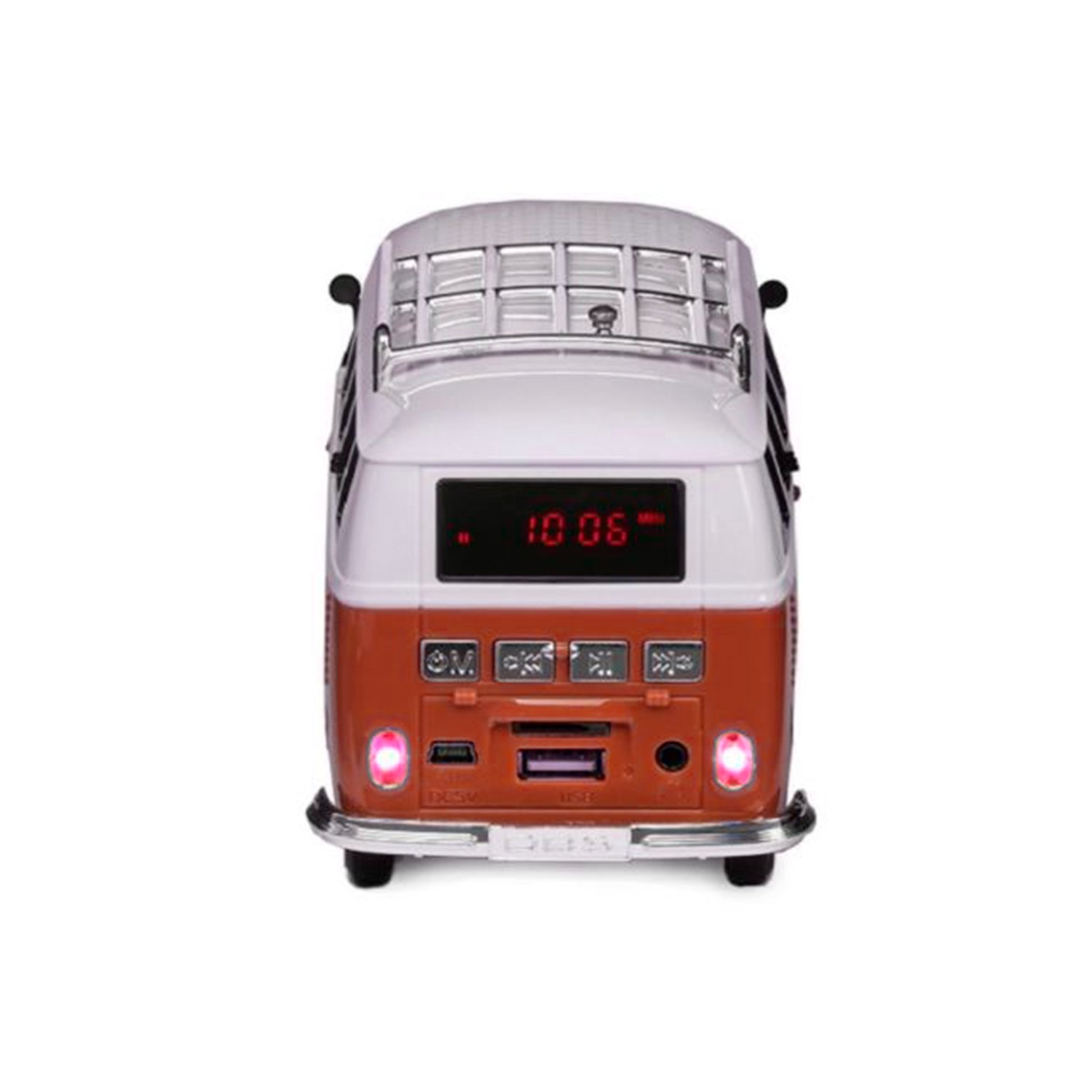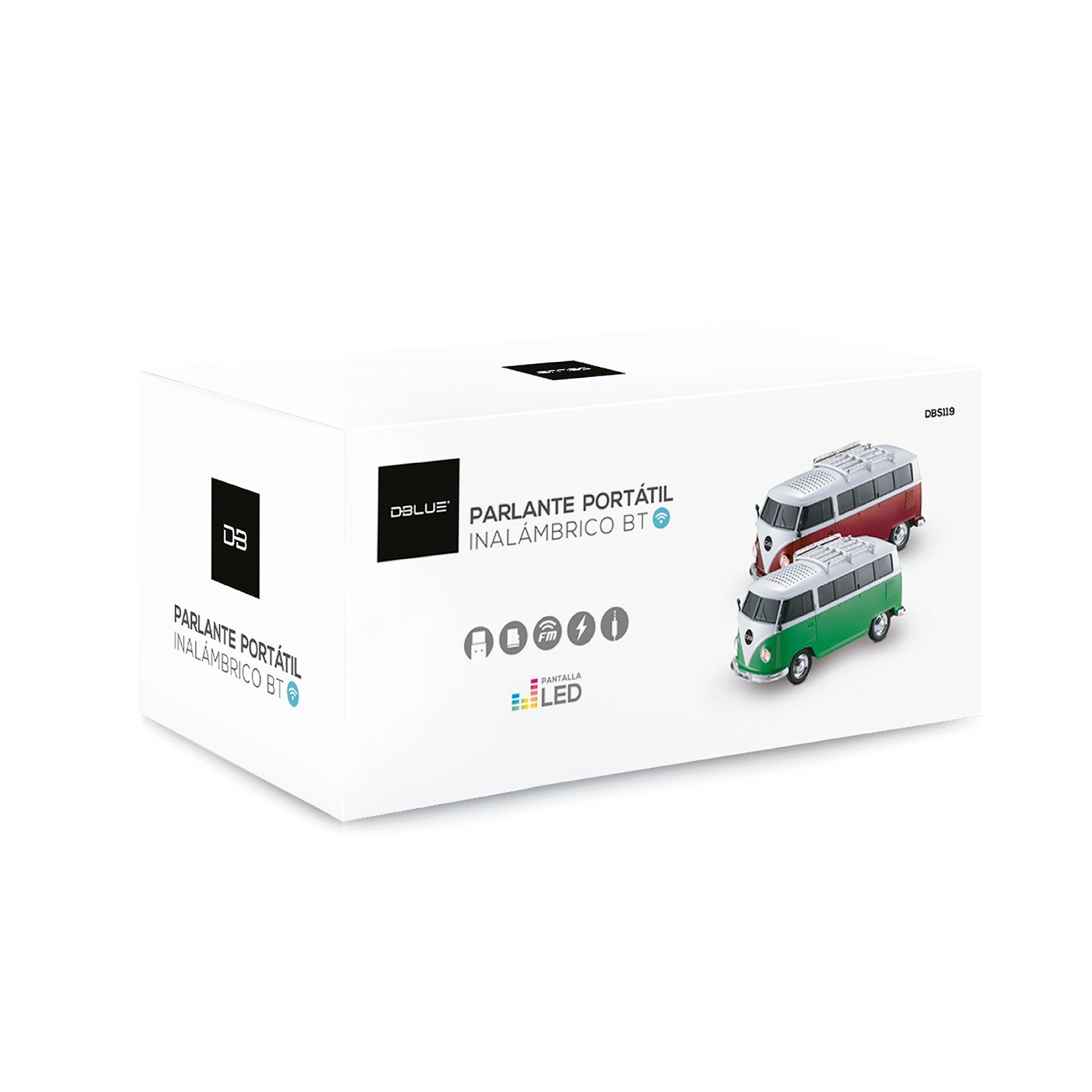 Parlante portátil con bluetooth, diseño combi, entrada USB y TF card, radio FM, alimentación externa DC5V, batería recargable de litio, conector estéreo 3.5 mm y pantalla LED.