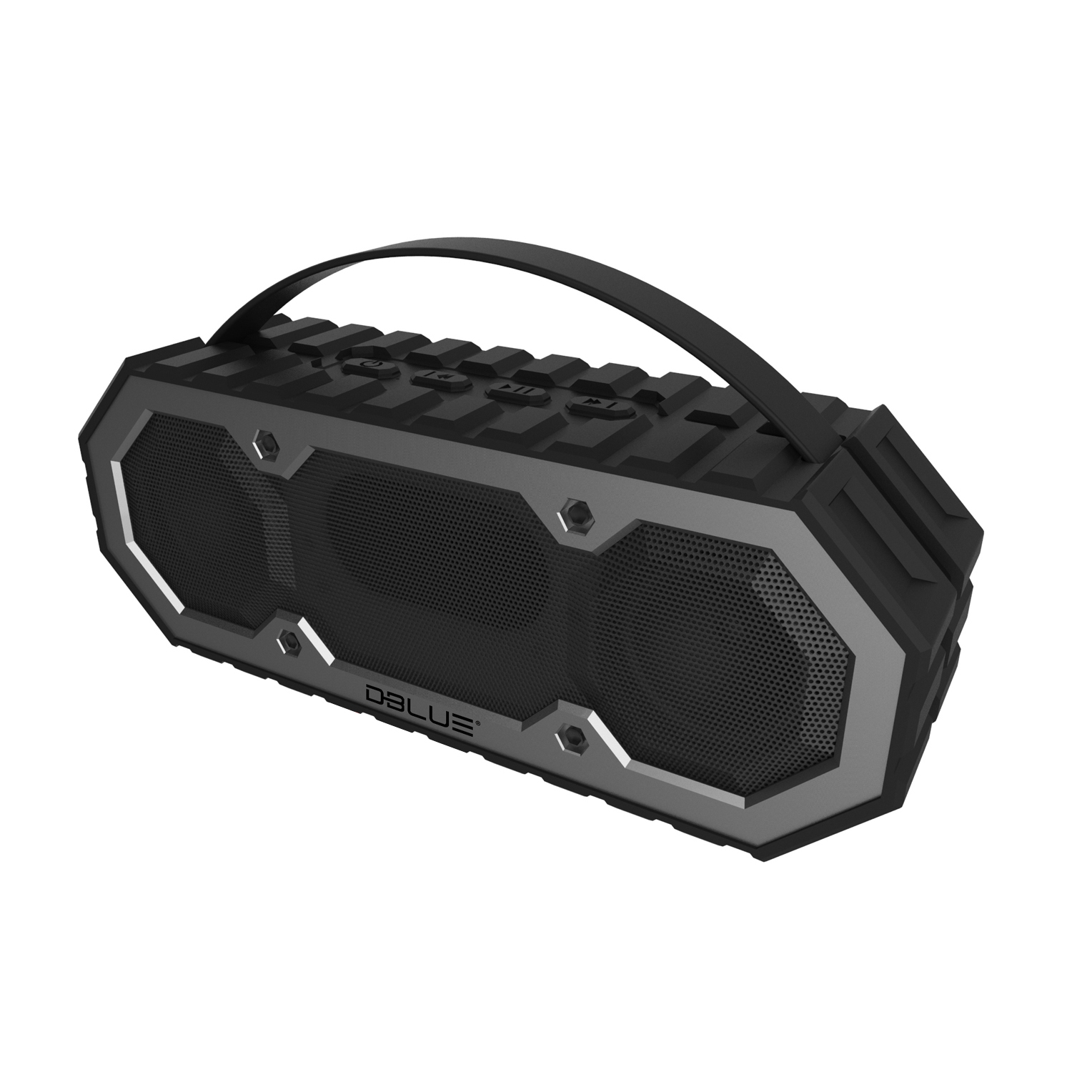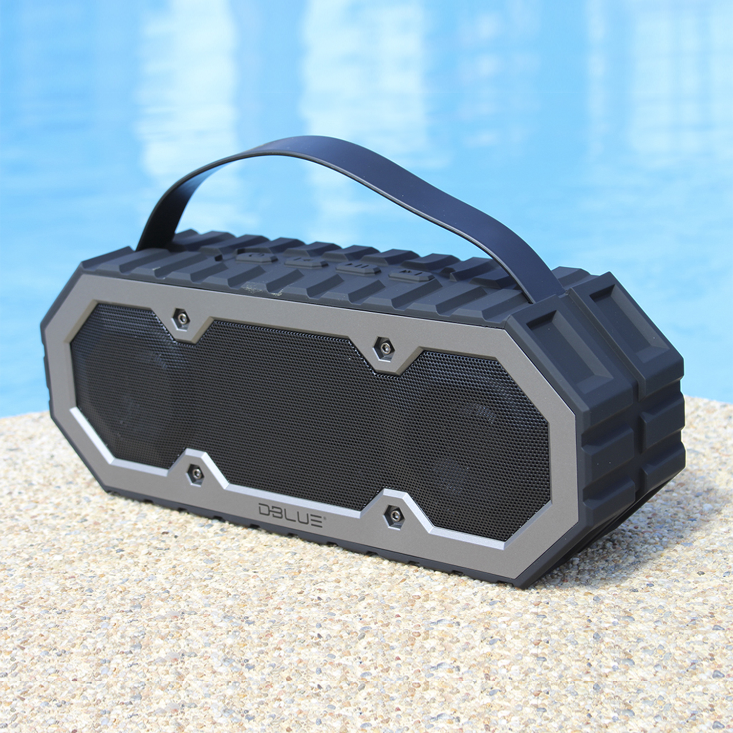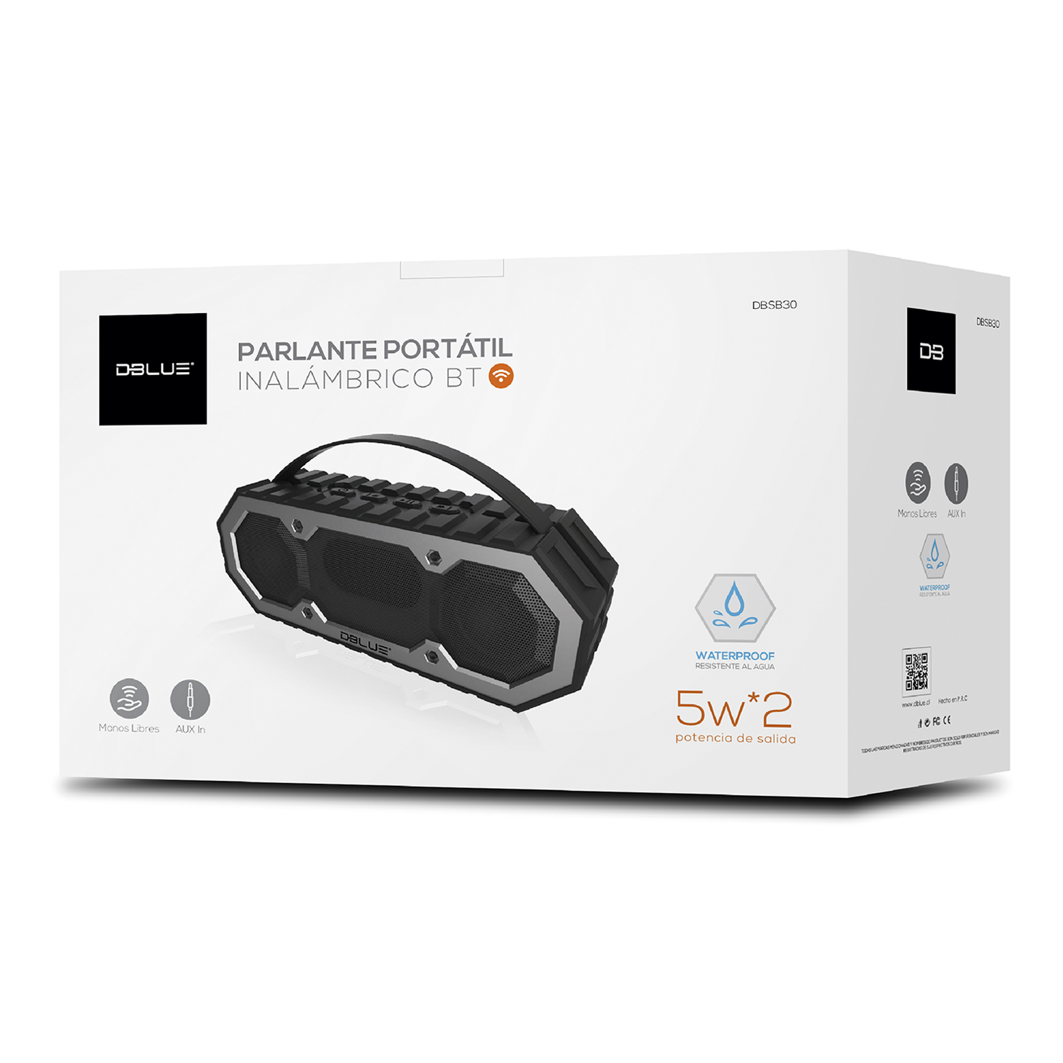 Parlante portatil potente y resistente al agua con tecnología BT versión 2.1+edr, manos libres, salida de 5W*2, fuente de poder DC5V micro USB, entrada de audio 3.5 mm y parlante de 2.75 pulgadas*2 con batería recargable de 2000ah.