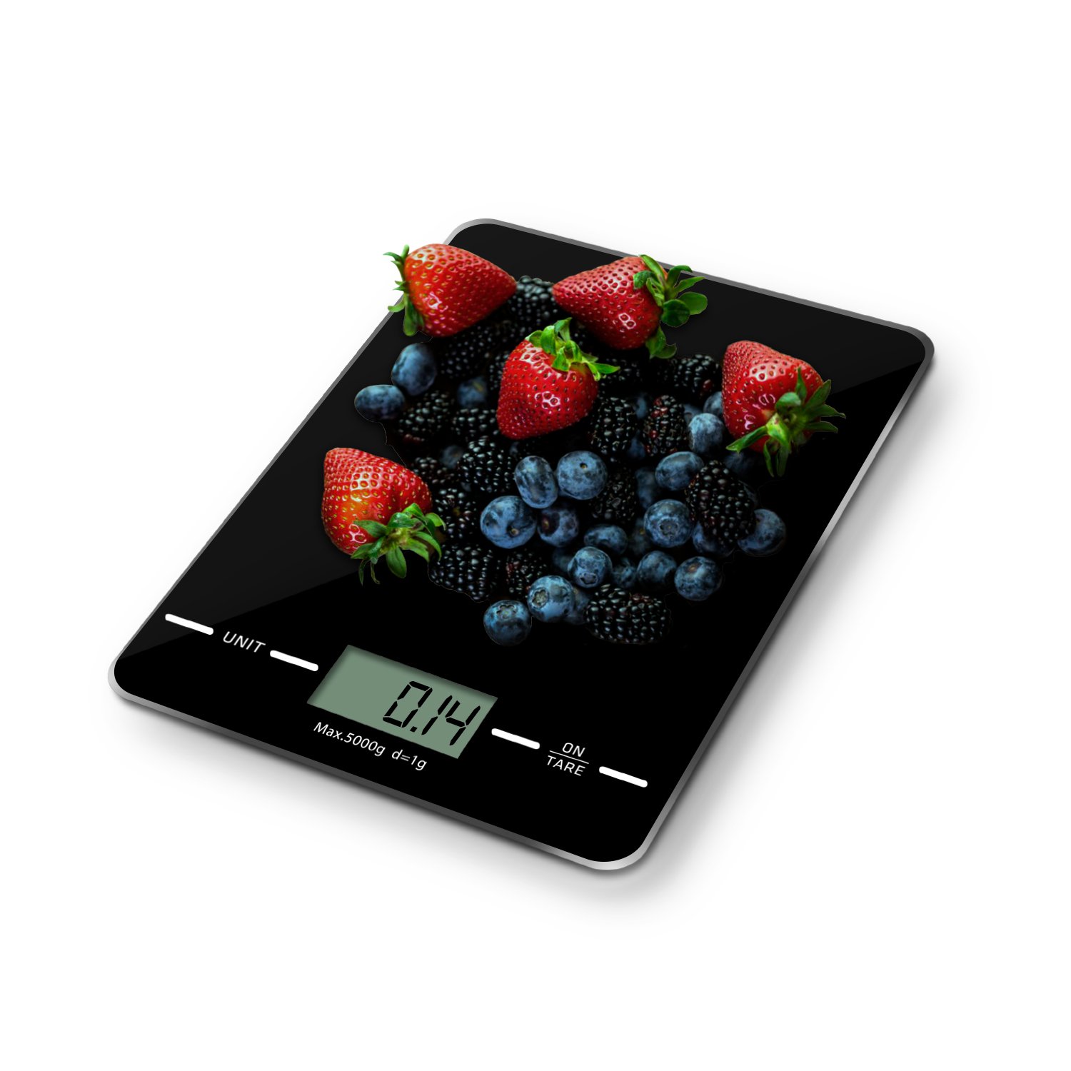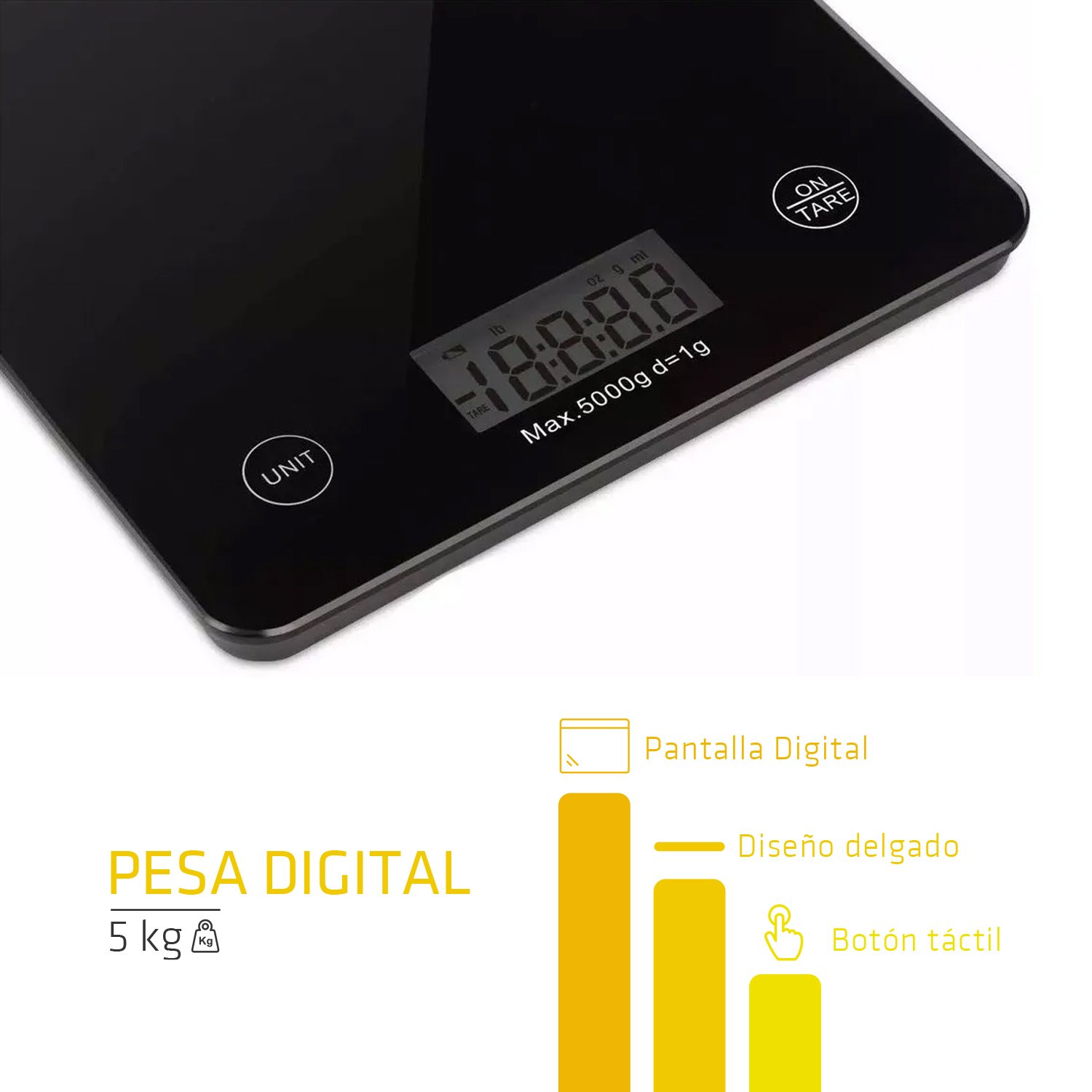 Balanza digital de cocina compacta y resistente, ideal para pesar alimentos en la cocina. pesa hasta 5 kg.