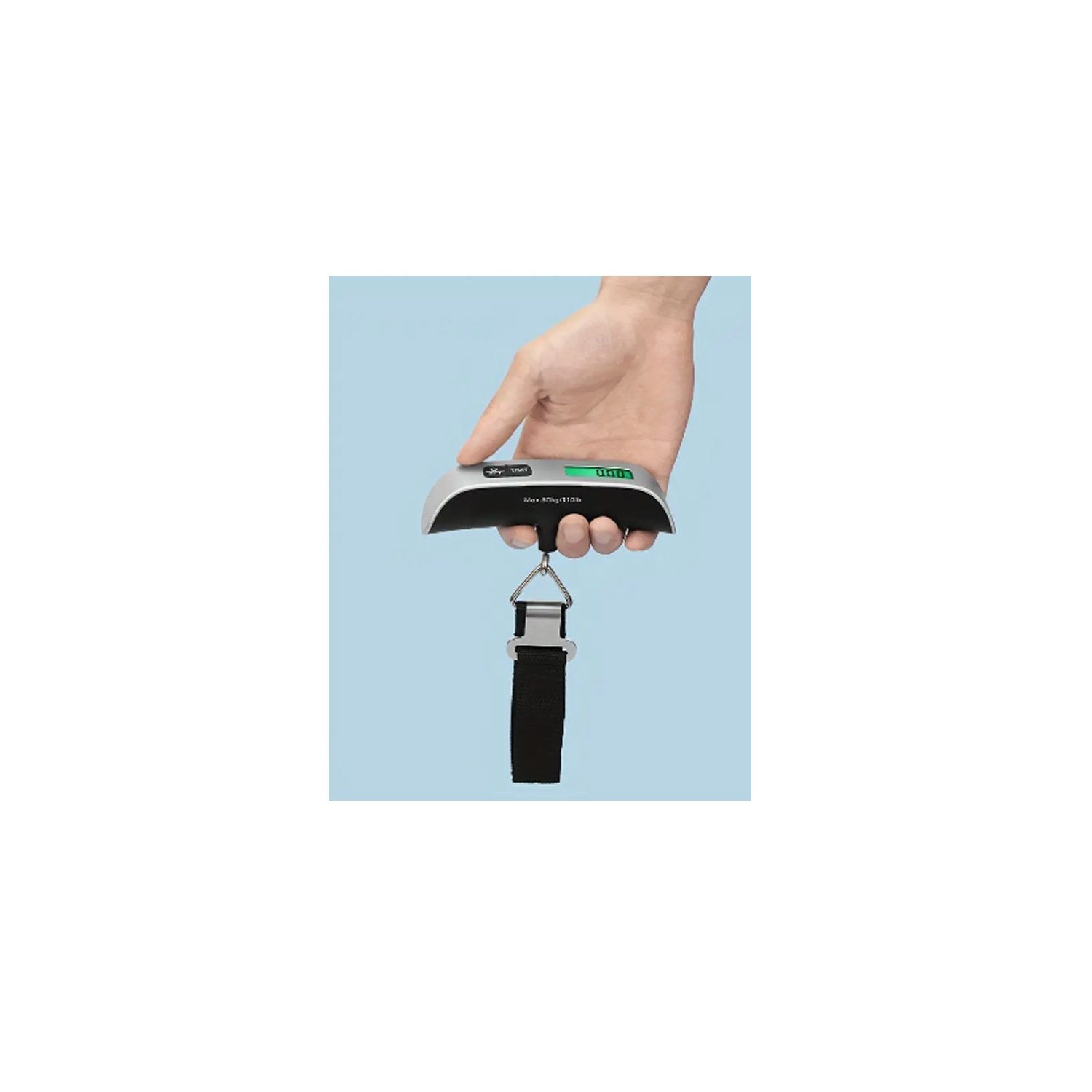 Pesa digital para equipaje, Capacidad 50 kg, Indicador de temperatura ambiente, Plataforma de acero inoxidable, Indicador de batería baja y sobrecarga, Batería CR2032, Ideal para viajes