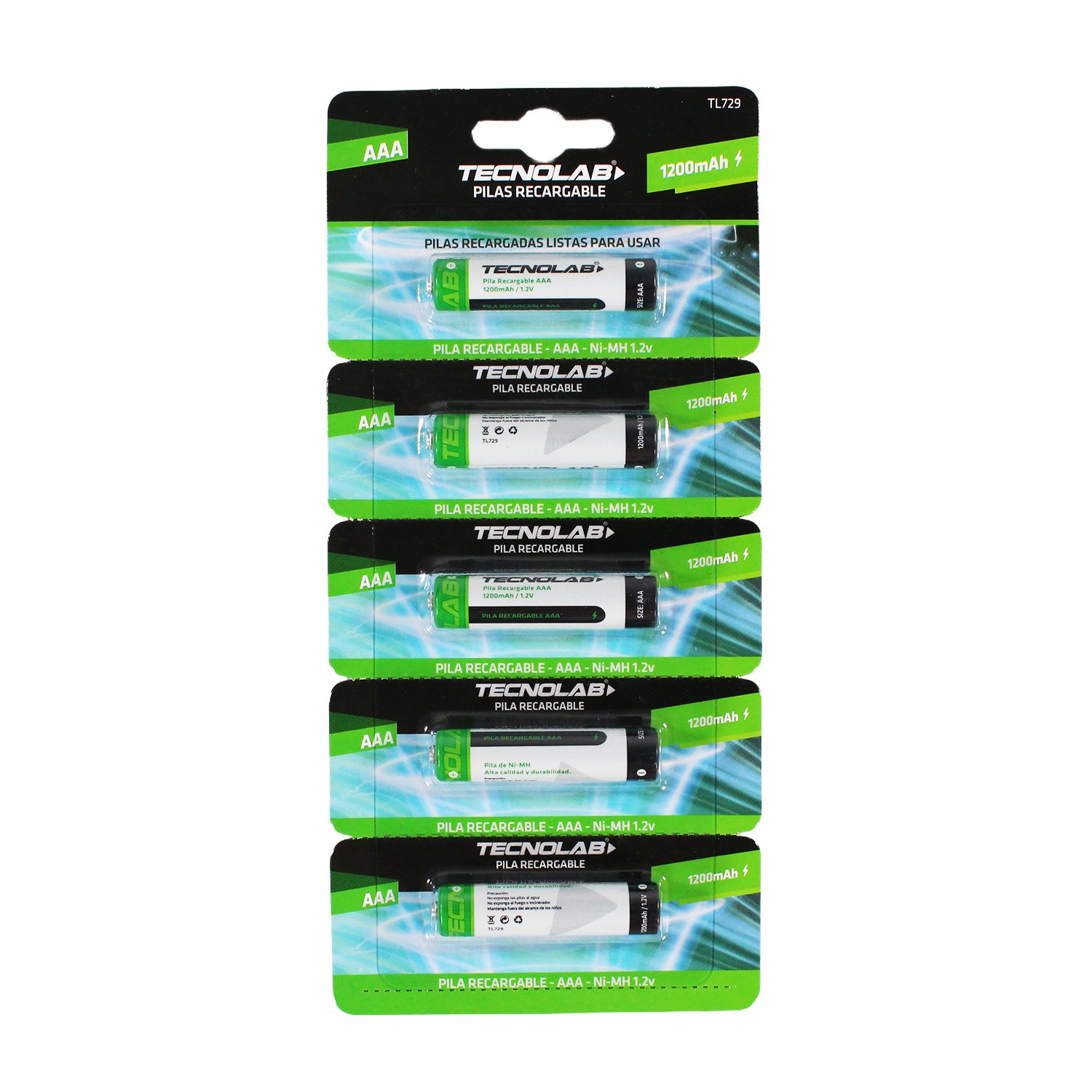 – Modelo: PILA TECNOLAB RECARGABLE AAA 1200mAh PACK 5 UNIDADES