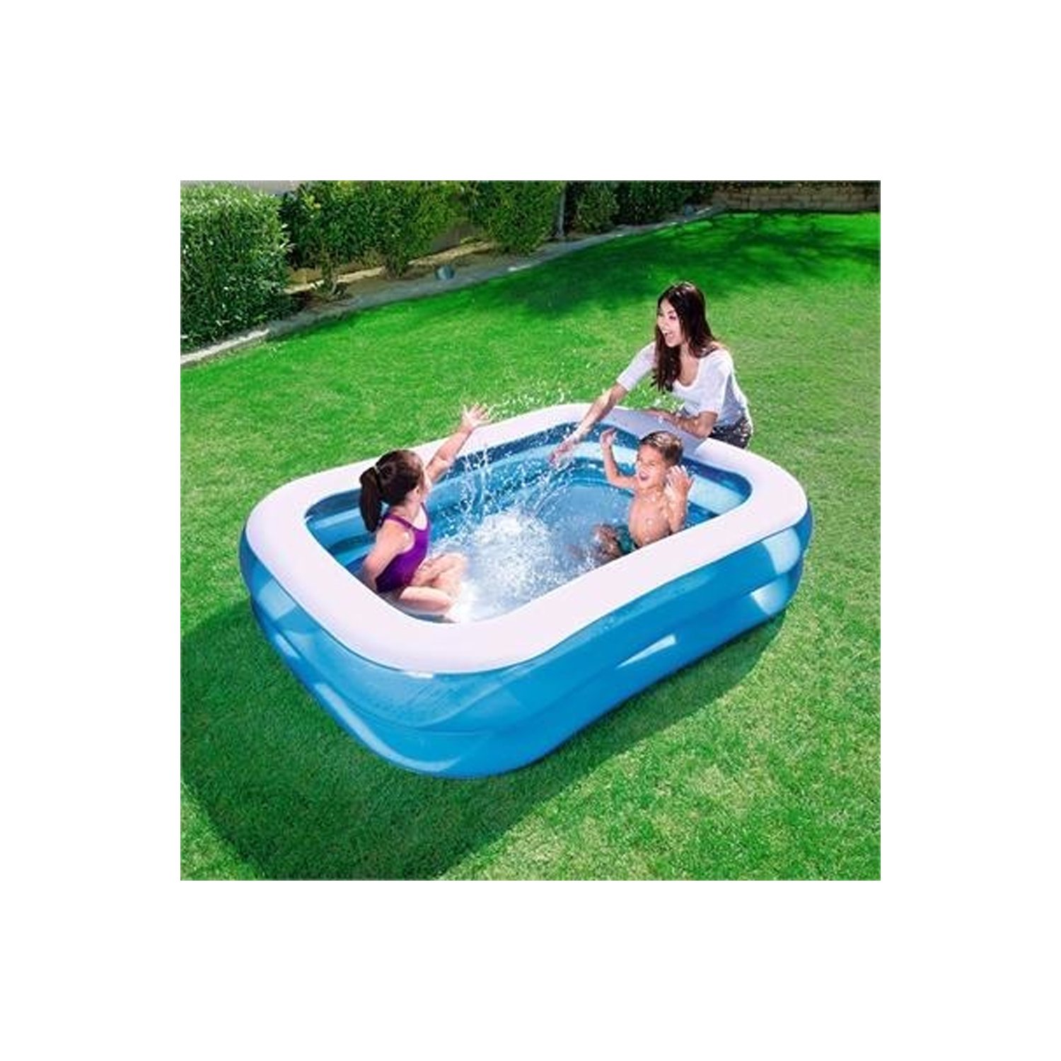 La piscina rectangular de 201 x 150 x 51 cm es una opción ideal para el entretenimiento al aire libre. su tamaño y diseño lo convierten en un espacio perfecto para jugar con amigos y familiares. la piscina se ajusta a las normas de seguridad, por lo que no debe ser utilizada por menores de seis años.