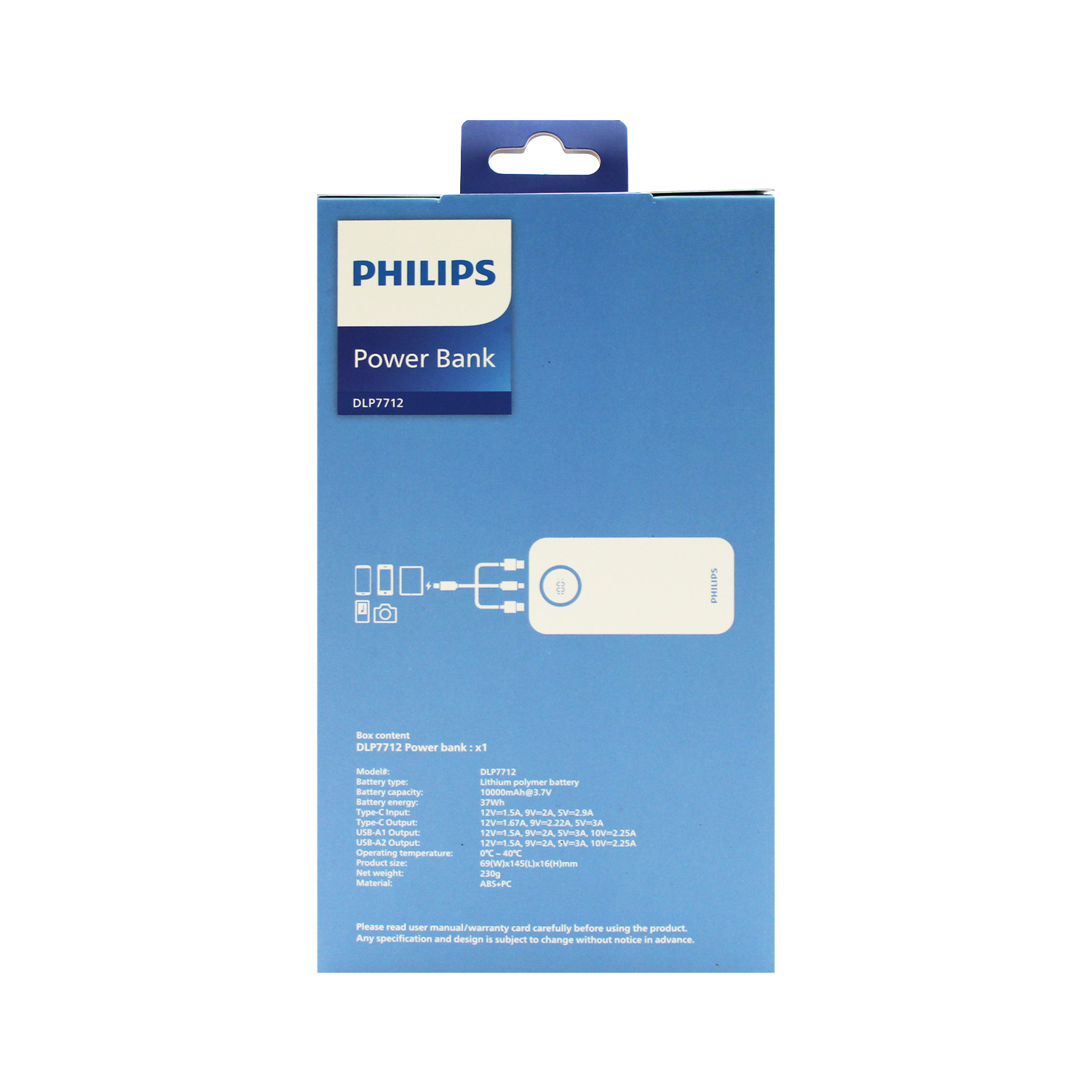 POWERBANK PHILIPS 10000MAH – 22.5WS – PANTALLA LED – SALIDAS 2XUSB-A/1XTIPO C -WHITE