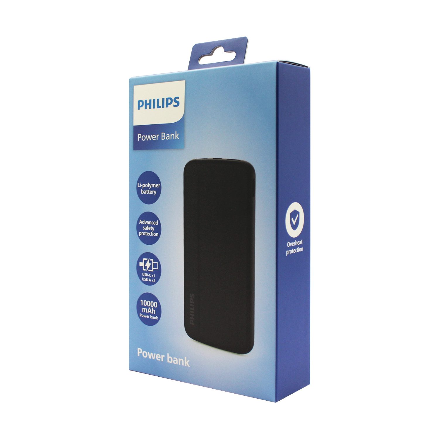 Portátil de 10000mah, cargo rápido hasta 22.5w, dos salidas USB-A y una salida usb-c, diseñado por philips.