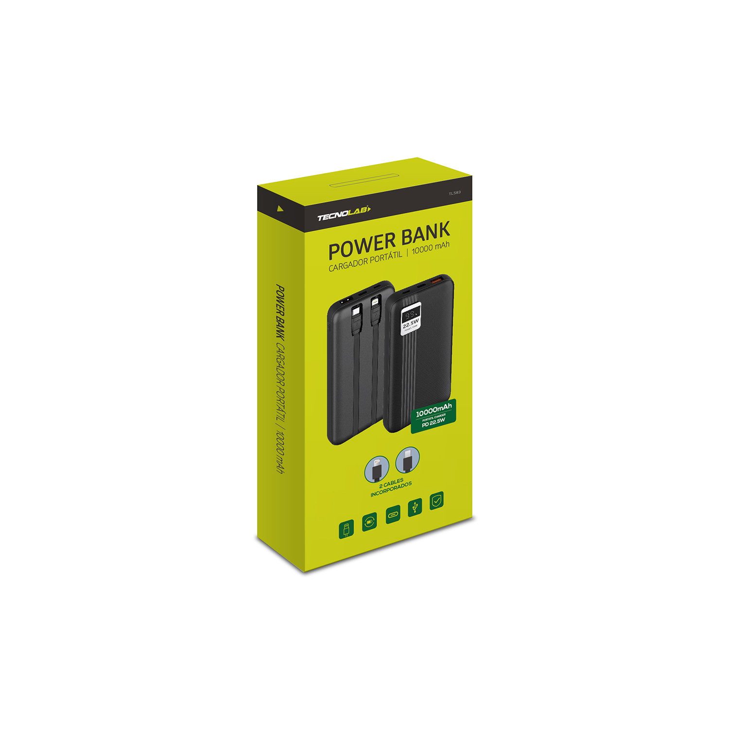 POWERBANK TECNOLAB 10000MAH 22,5W INCLUYE 2 CABLES – TIPO C Y LIGHTNING – WHITE