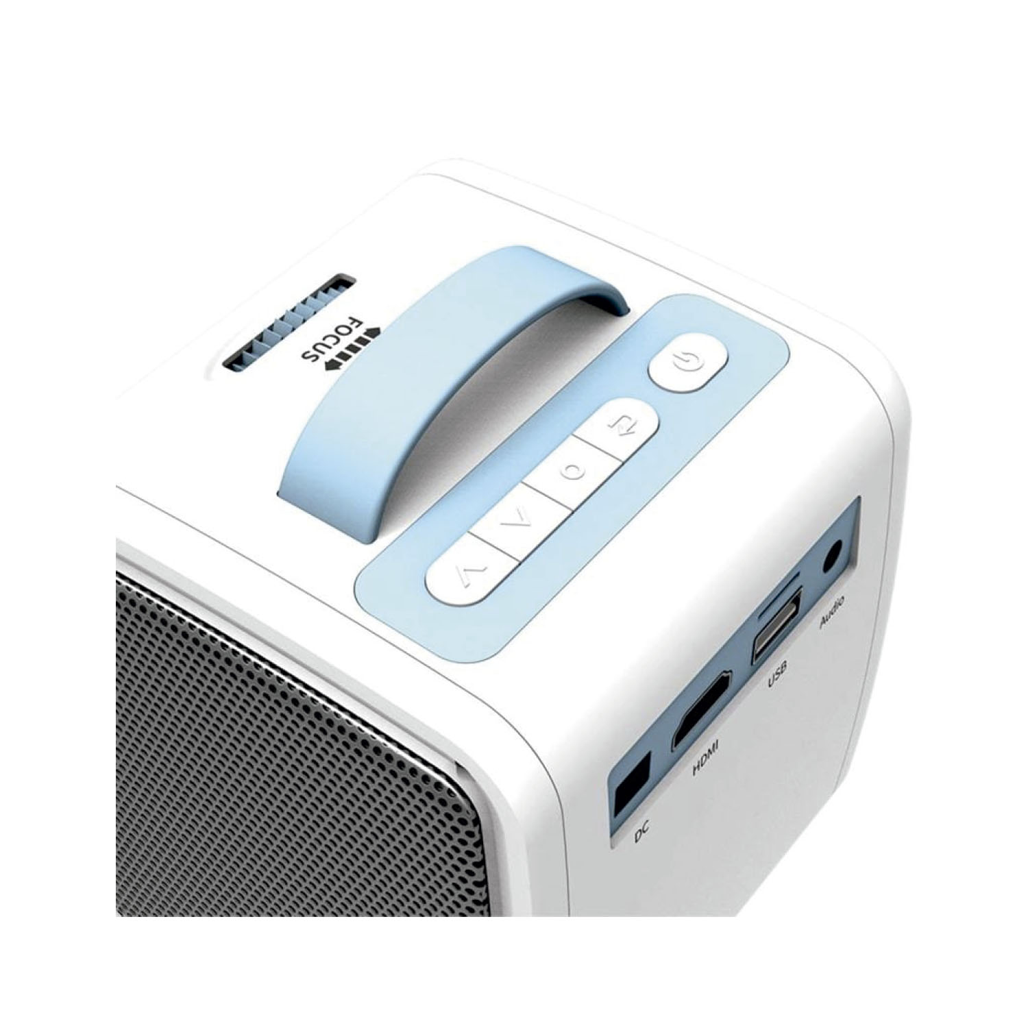 Mini proyector ideal para niños. admite decodificación de video con resolución HDTV 1080p. con una lámpara LED de 700 luces. altavoces incorporados. tamaño de imagen de hasta 70 pulgadas durante más de 20,000 horas de vida estimada. compatible con múltiples interfaces como entrada HD, puerto USB, puerto de audio av/3.5 mm y ranura para tarjeta TF.