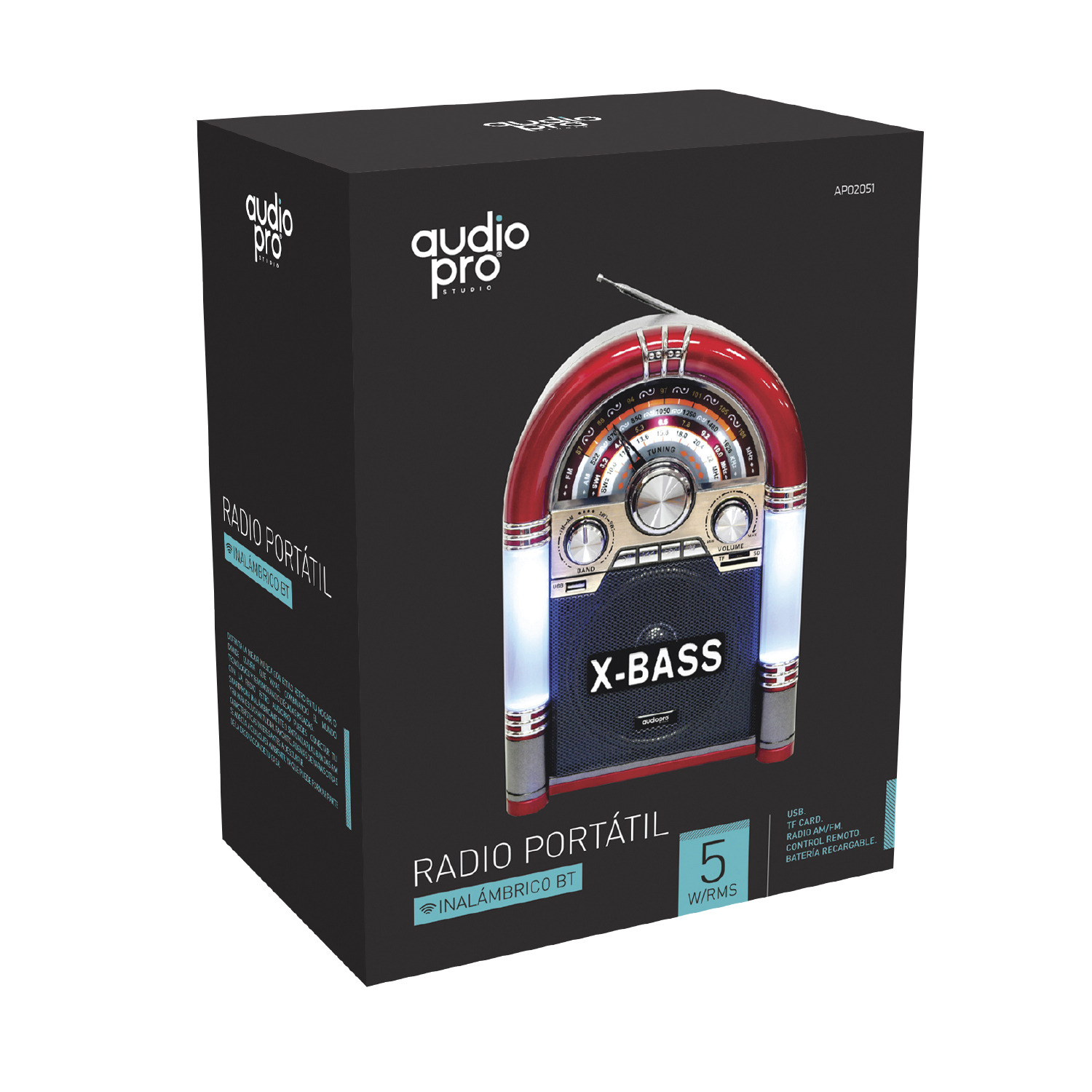 RADIO AUDIOPRO ROCKOLA GRANDE FM DE 3 BANDAS /BT/USB/SD/BATERIA RECARGABLE