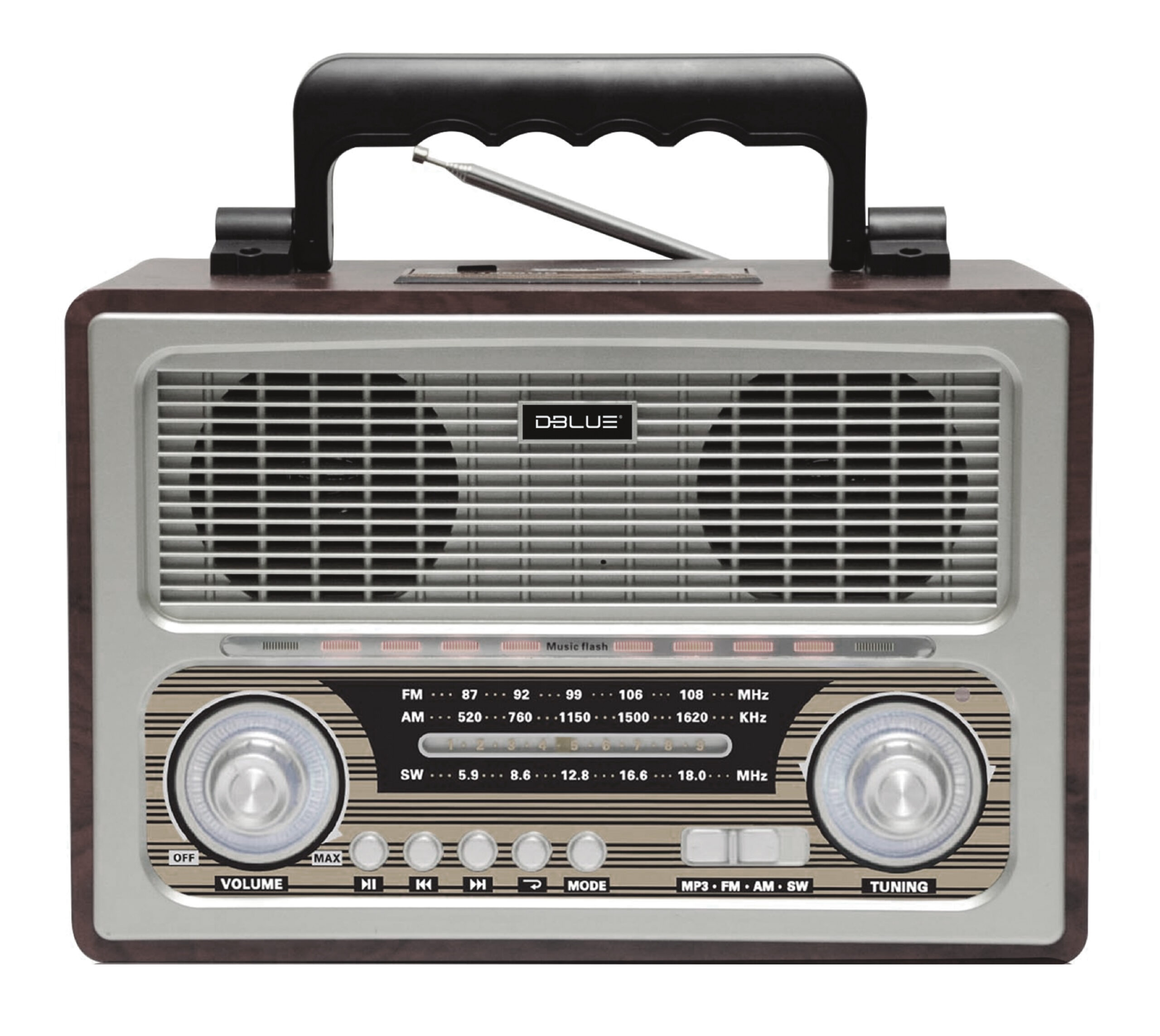 Disfruta la música de manera retro y portátil con este radio elegante.