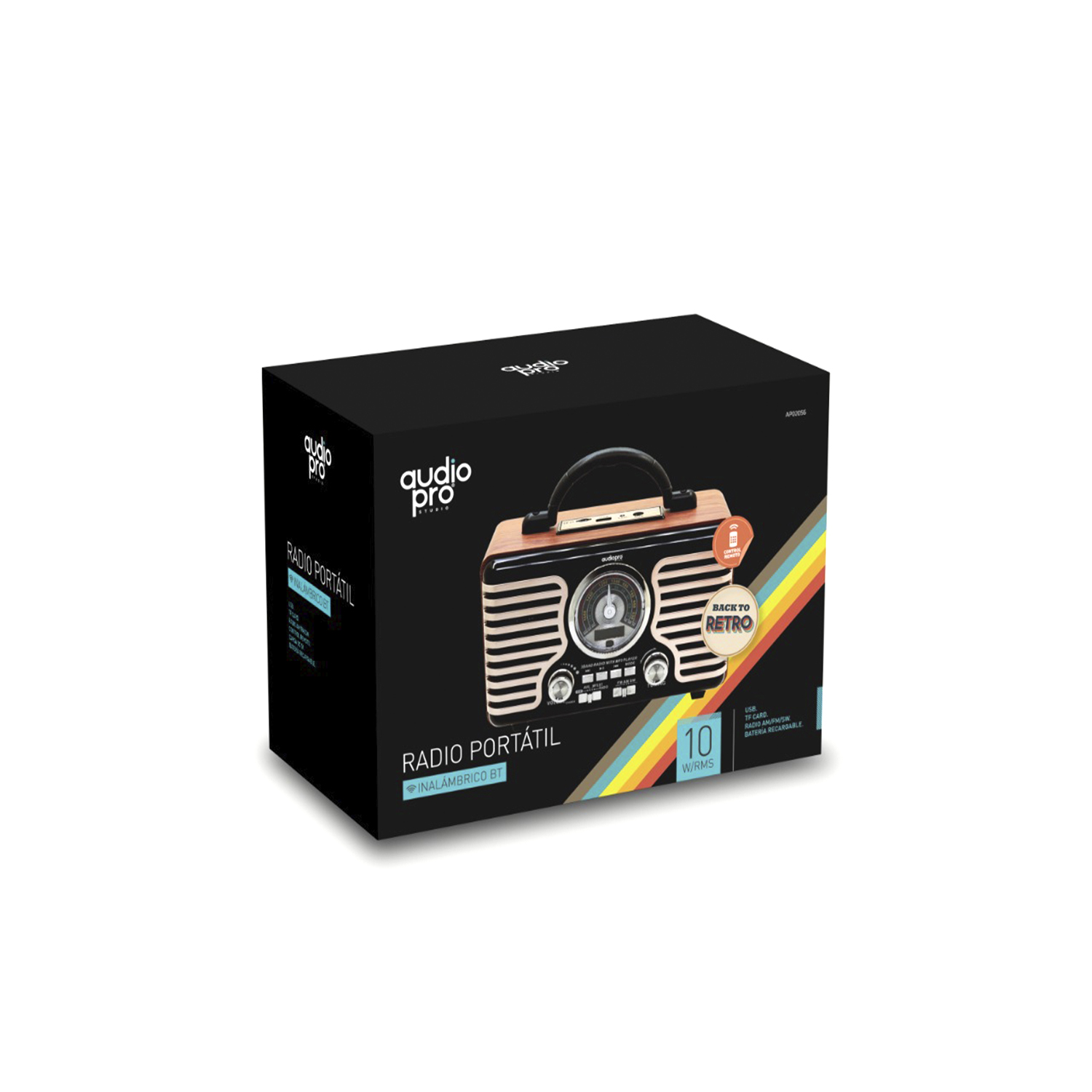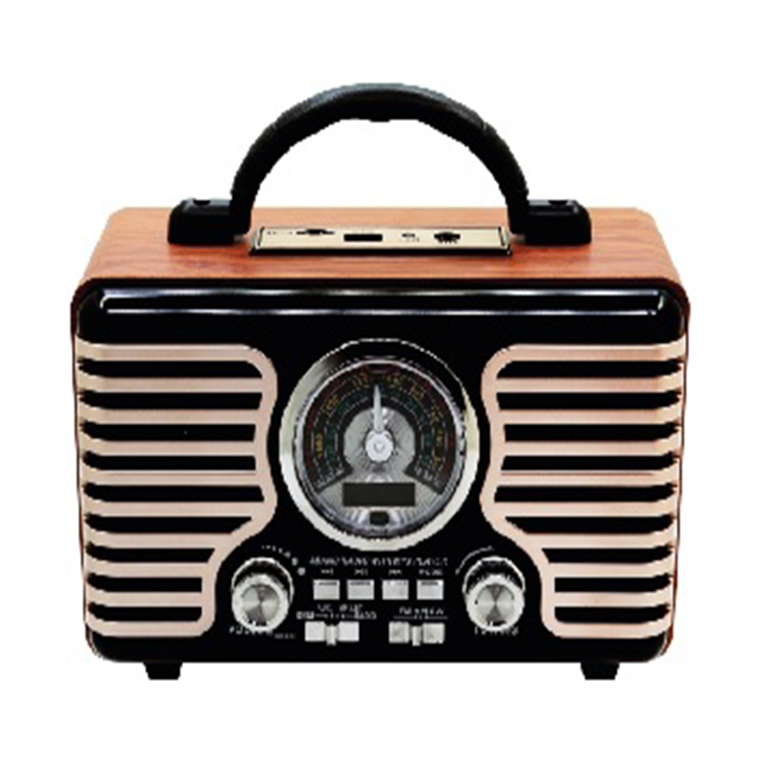 Radio retro portatil bluetooth/fm/usb/sd/recargable. con batería recargable de litio, entrada puerto USB y tarjeta TF card. tiempo de carga de 8 a 12 horas.