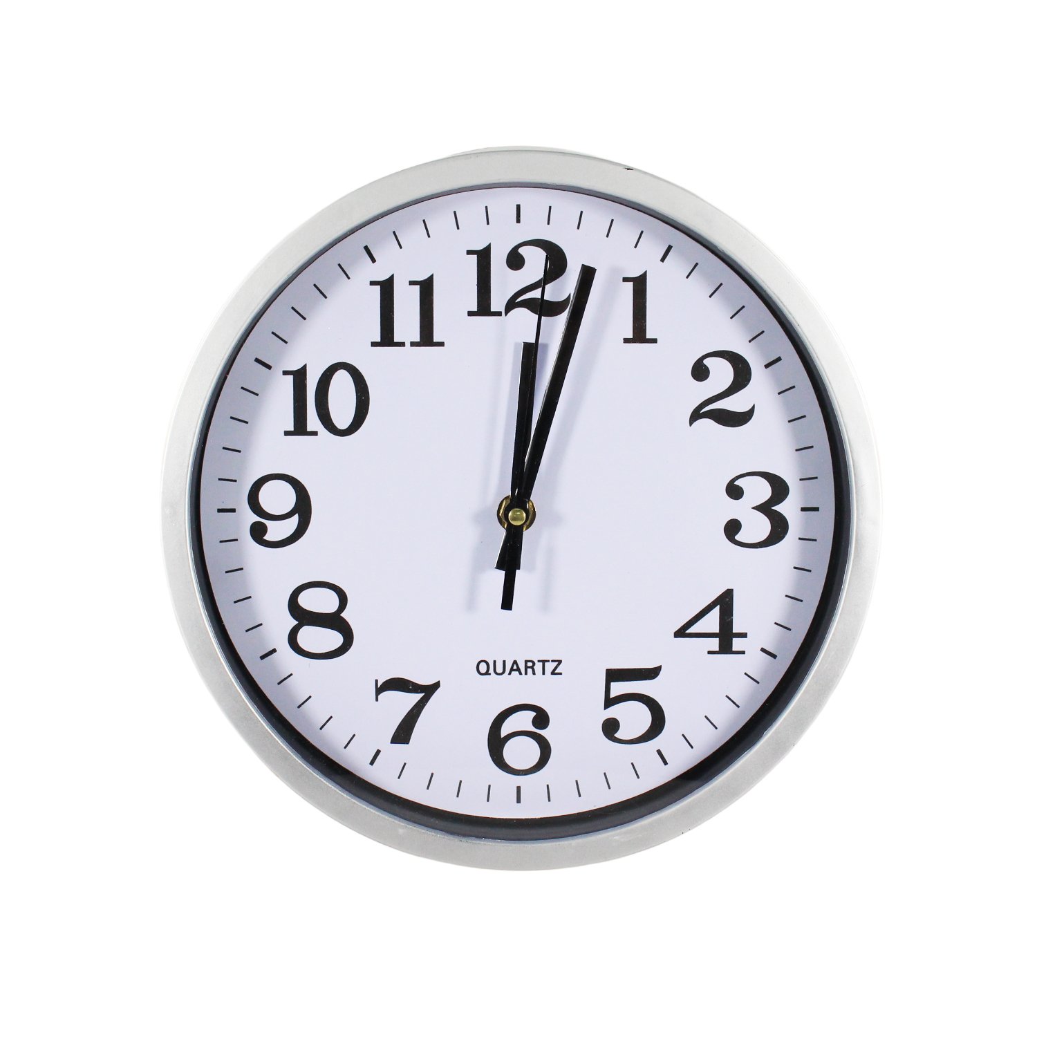 Reloj decorativo de 25 cm, Borde plateado, Manecillas/números negros, Plástico, Ideal sala/cocina/restaurante, No incluye pila (1×AA)