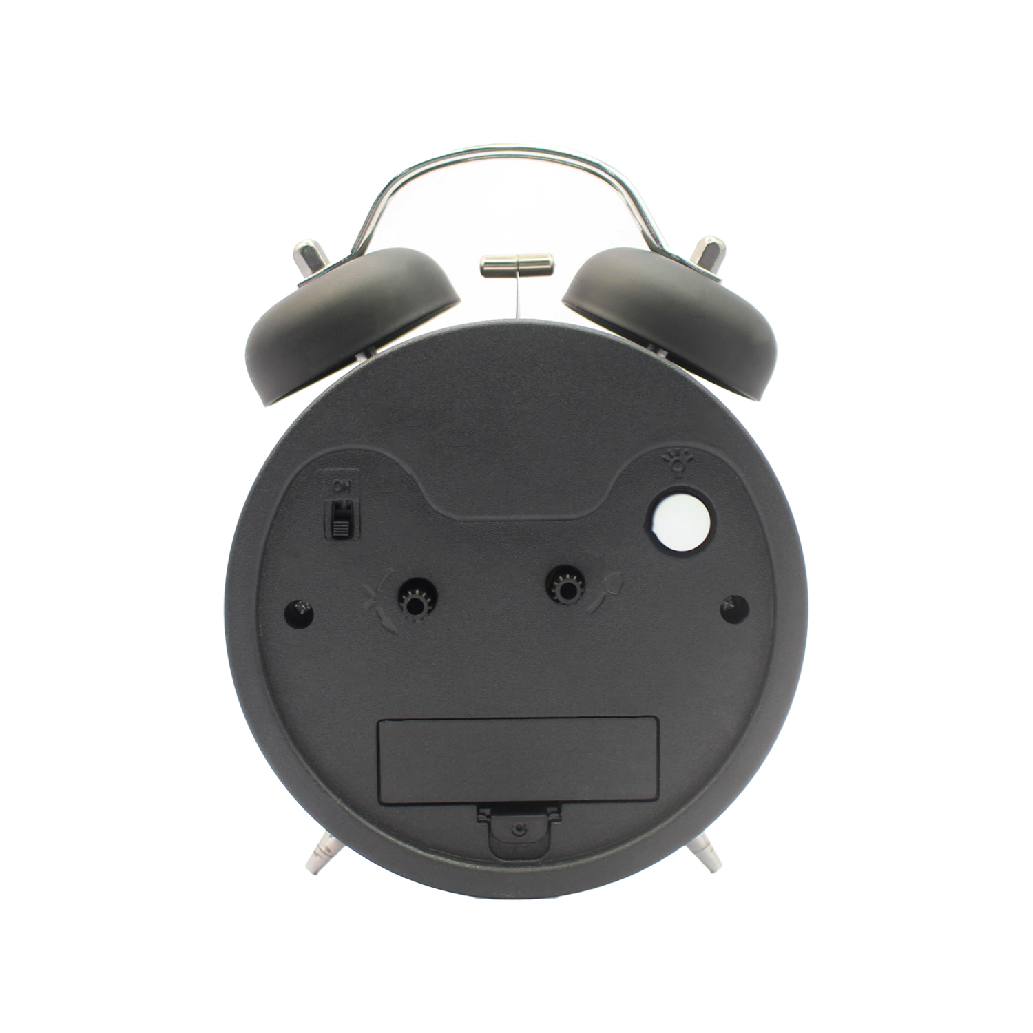 RELOJ DESPERTADOR ANALOGO SILENCIOSO CON LUZ Y CAMPANA BLACK
