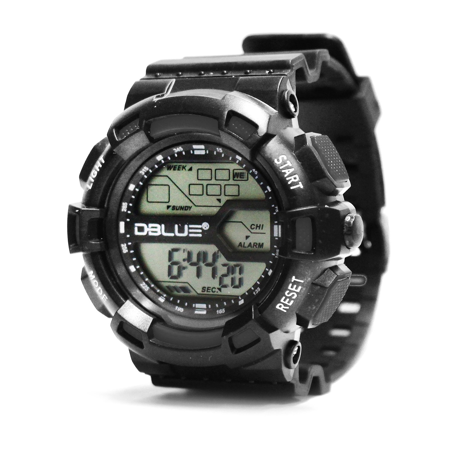 RELOJ DIGITAL DEPORTIVO, PANTALLA LED, CRONOMETRO, FECHA, HORA, CORREA DE CAUCHO, CIERRE DE HEBILLA. BLACK