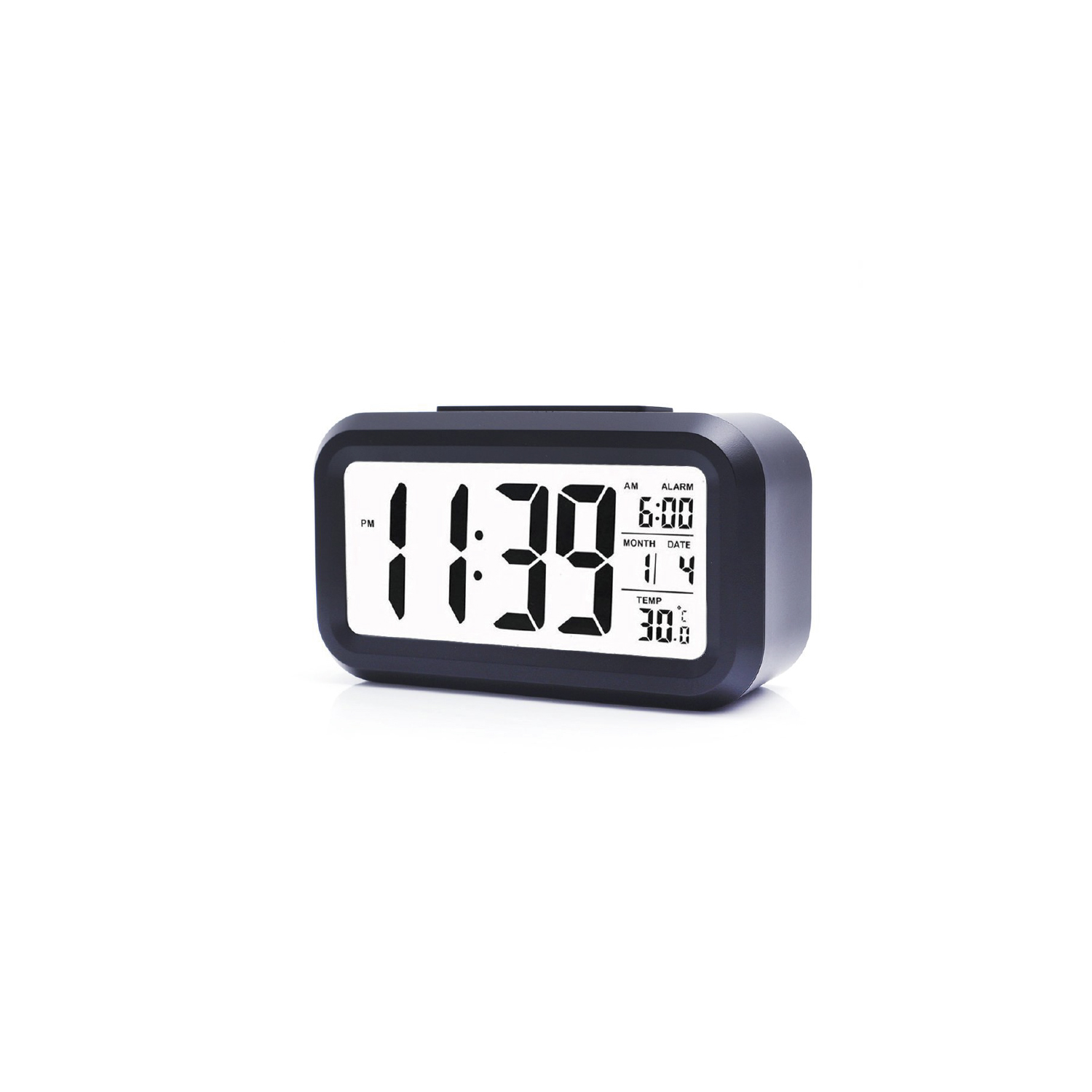 RELOJ DIGITAL TECNOLAB, DESPERTADOR, CALENDARIO, TERMOMETRO, RETROILUMINACION AZUL, SENSOR AUTOMATICO. BLACK