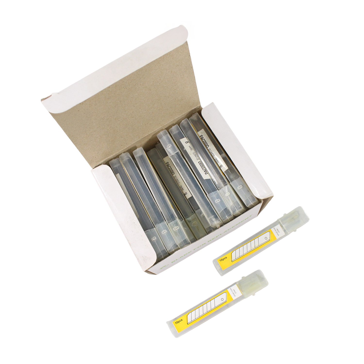 El set de cuchillas Pacific para cartonero incluye 10 unidades de repuesto, ideales para mantener cortes limpios y precisos en trabajos de embalaje, cartón y uso diario. Son compatibles con cuchillos de 16 cm x 9 mm y cuentan con guías de corte para un recambio práctico y seguro.