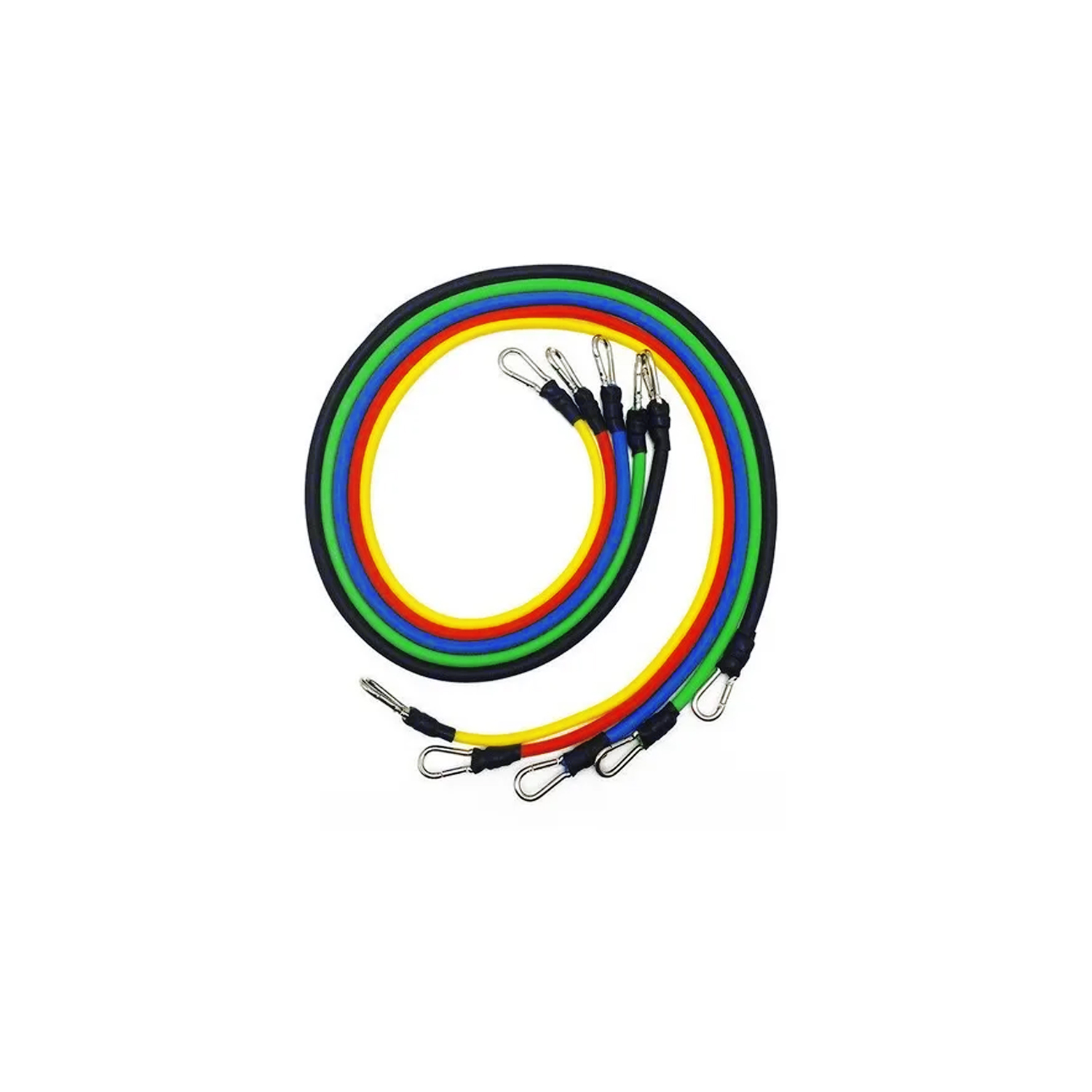 SET DE 11 PIEZAS PARA EJERCICIOS, INCLUYE 5 BANDAS DE RESISTENCIA DE LATEX NATURAL, HASTA 150 LIBRAS.