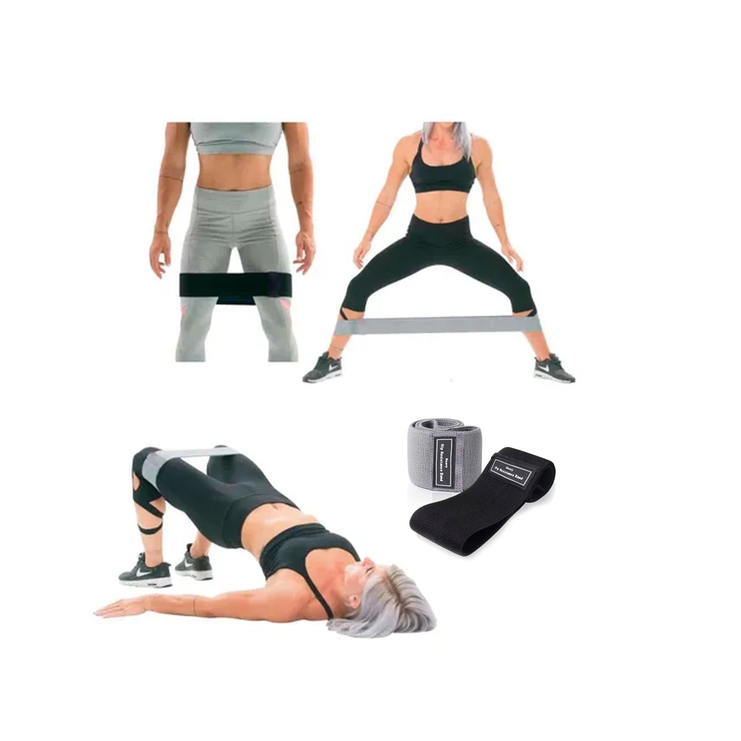– Tres bandas de resistencia de tela para las piernas y el trasero.