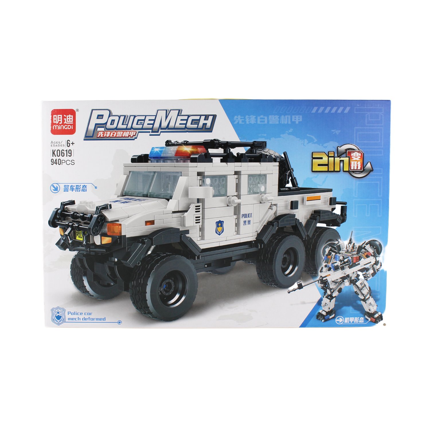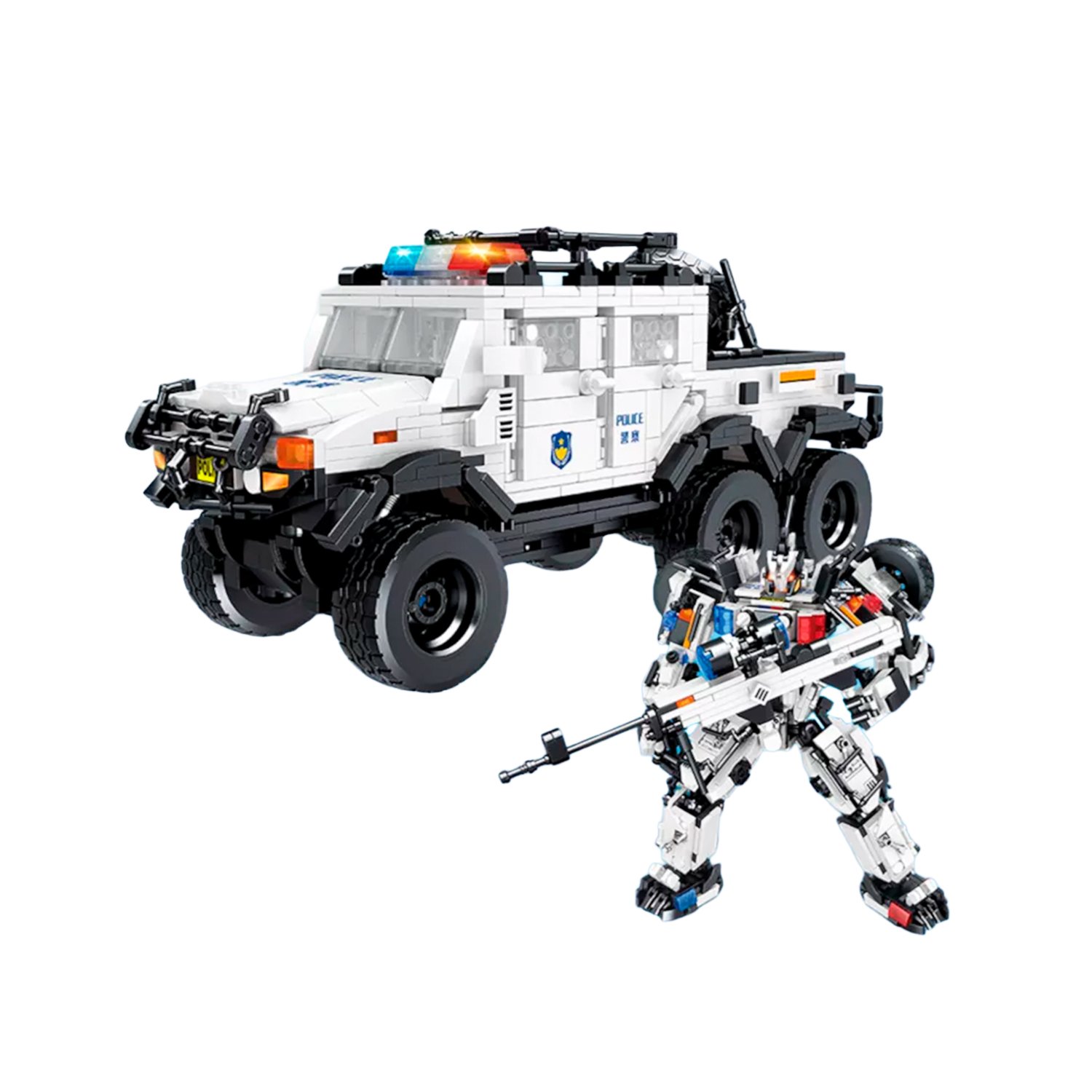 Set de bloques armables 2 en 1, mecha y vehículo policial