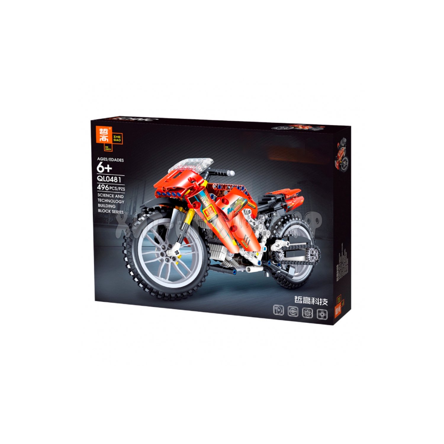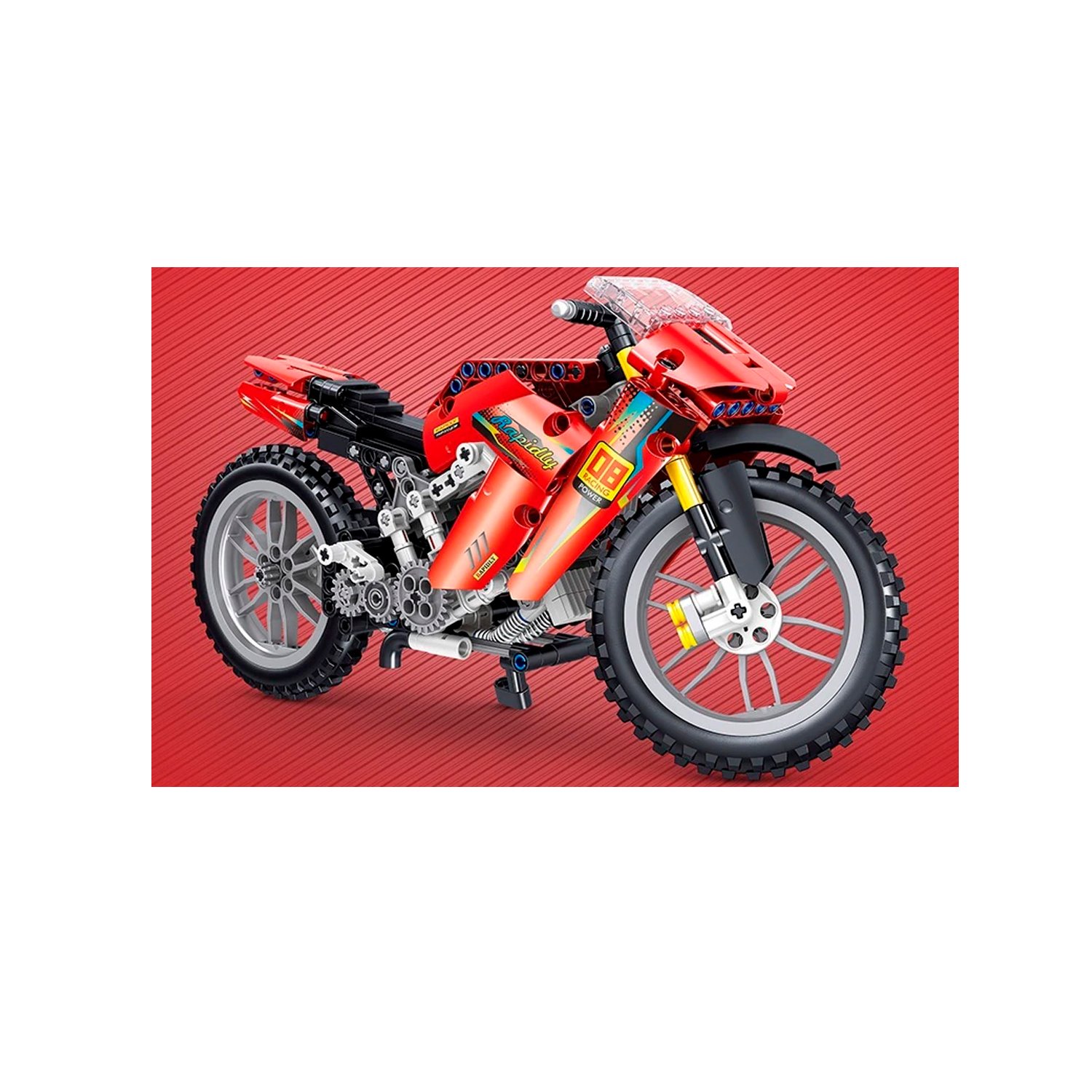 Motocicleta armable DE 496 piezas. sin detalles técnicos disponibles.
