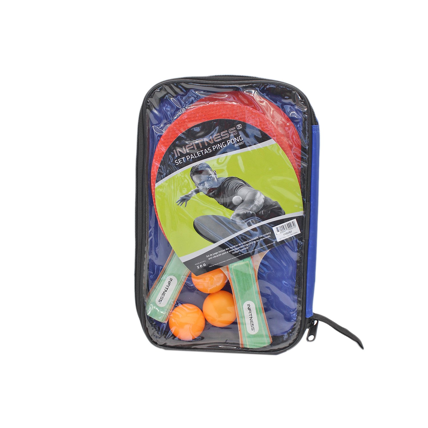 Incluye 2 paletas de madera, 3 pelotas, bolso de transporte, sistema antivibración