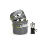 El conjunto de ollas camping es perfecto para cocinar al aire libre con facilidad y estilo.
