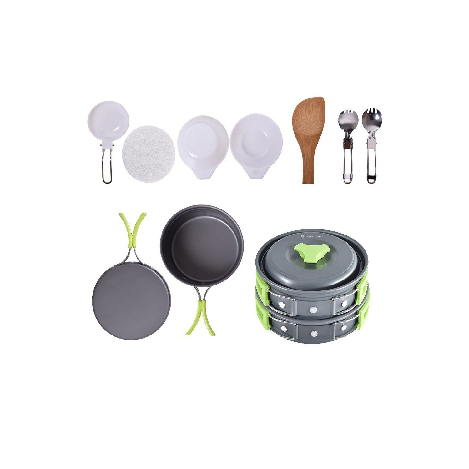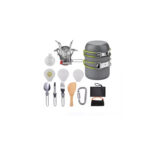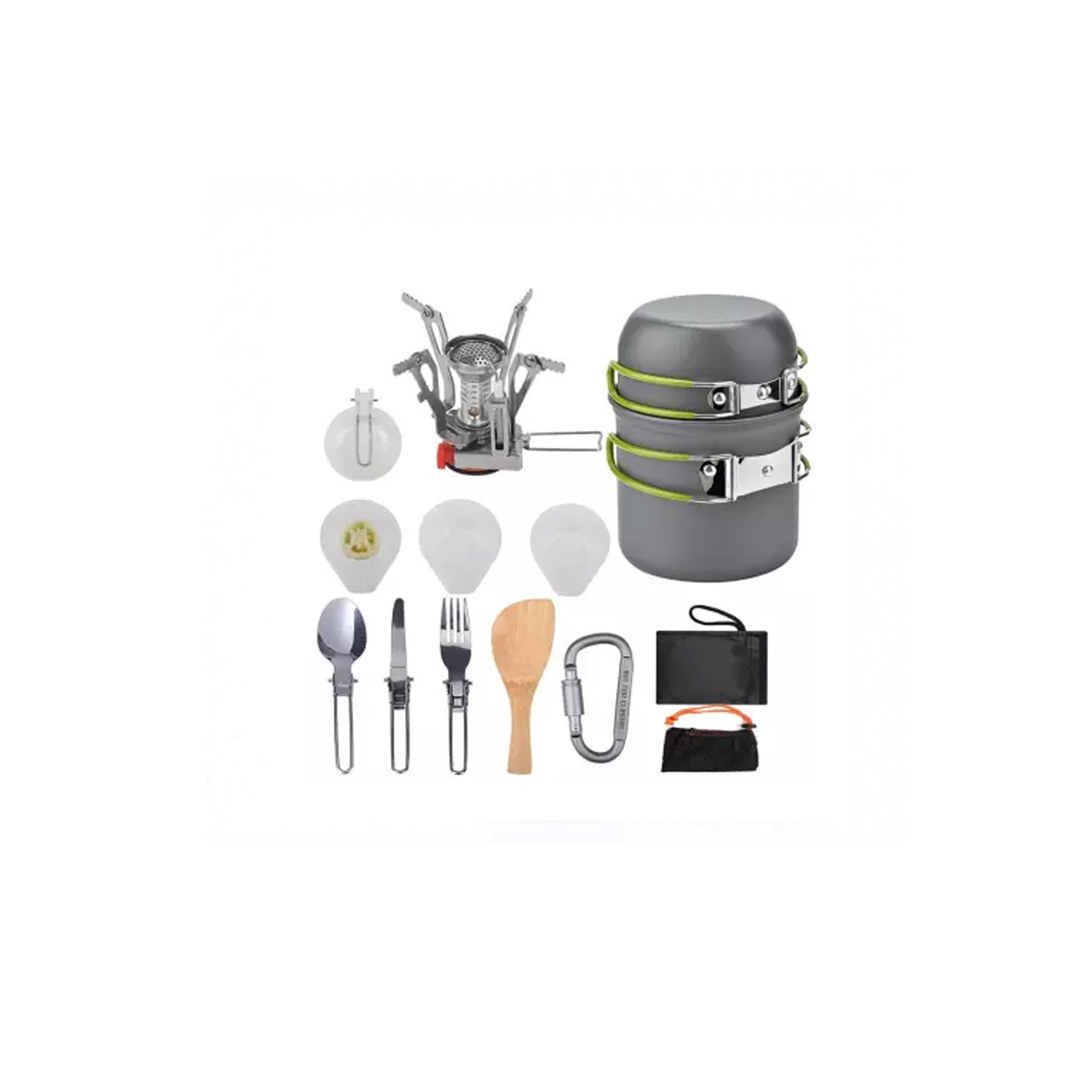 SET OLLAS DE CAMPING 11 PIEZAS CON COCINILLA Y CUBIERTOS / INCLUYE MALLA DE TRANSPORTE