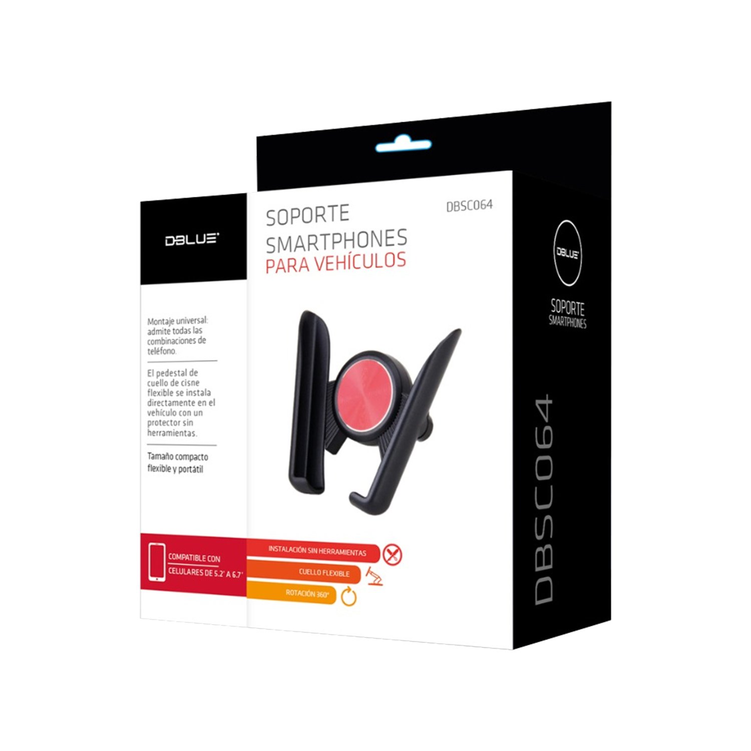 SOPORTE COMPACTO PARA TELEFONO, REJILLA DE AUTO, MATERIAL ABS, COMPATIBLE CELULARES DE 5.2″ A 6.7″.