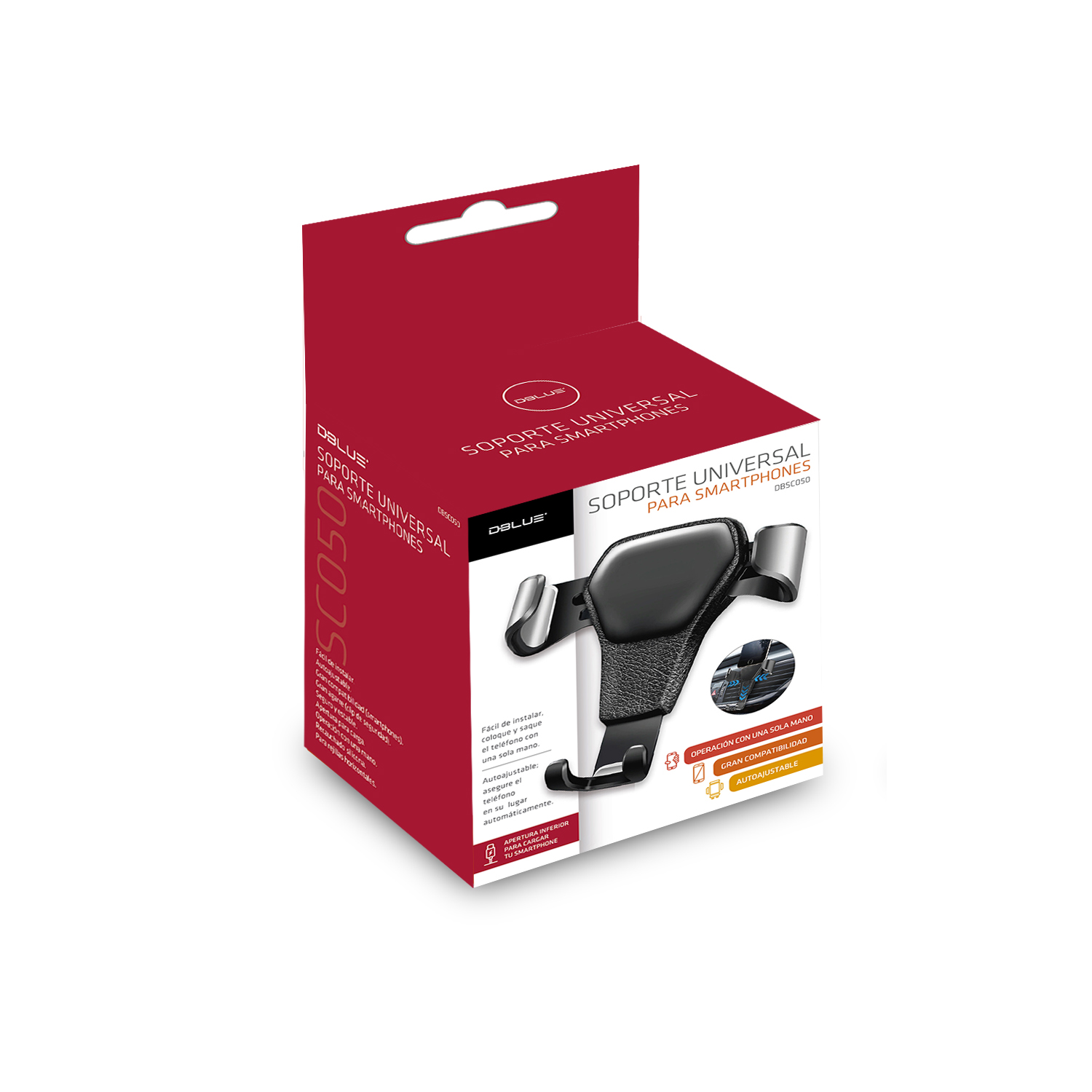 SOPORTE DBLUE PARA AUTOMOVIL AUTOAJUSTABLE PARA SMARTPHONE, CON CLIP DE SEGURIDAD, PARA REJILLAS HORIZONTALES.