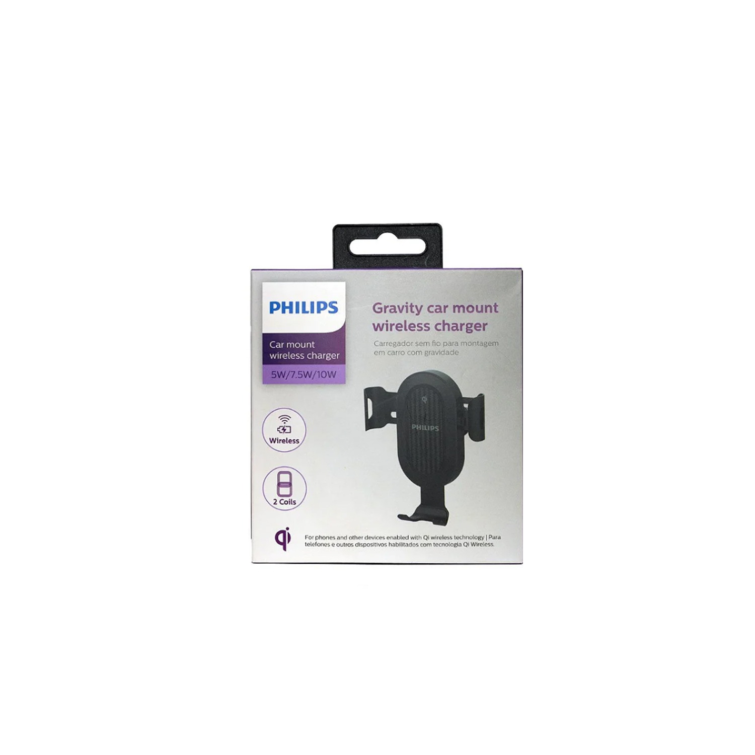 SOPORTE PHILIPS AUTO CON CARGADOR, PROTECCION SOBRECARGA, COMPATIBILIDAD AMPLIA, ENTRADA DC 5V 2A/9V 1.6A, SALIDA 5W/7.5W/10W.