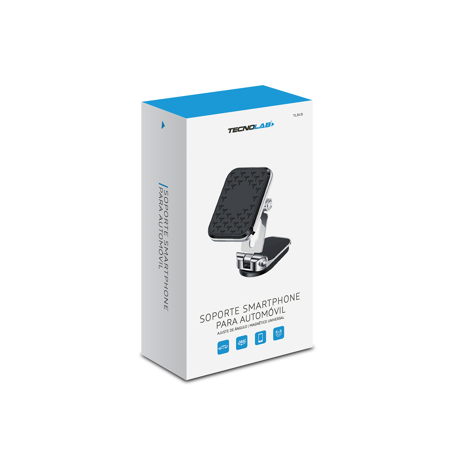 SOPORTE TECNOLAB PARA AUTOMOVIL DE SMARTPHONE, AJUSTE DE ANGULO, MAGNETICO UNIVERSAL, FLEXIBLE CON ROTACION 360°, DISEÑO ERGONOMICO.