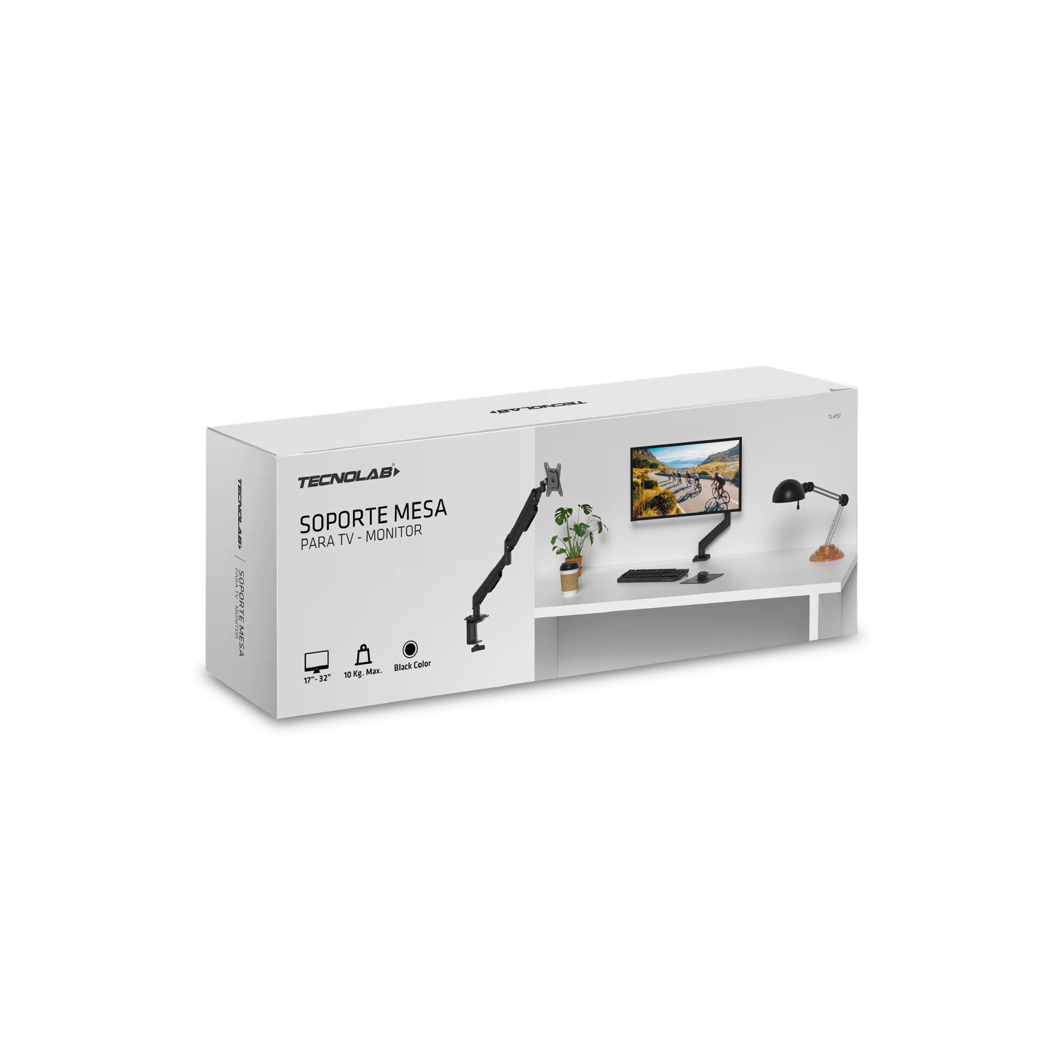 SOPORTE TECNOLAB TV MESA 17”-32”, CARGA 2.5-10KG, INCLINACION +-45°, ACERO LAMINADO, VESA 75X75MM.