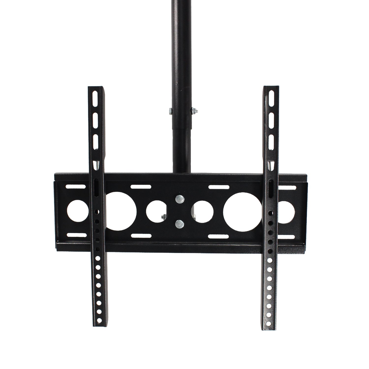 Gracias a su estructura de acero laminado y su capacidad de carga de hasta 30 kg, ofrece máxima estabilidad y resistencia. Ya sea en entornos domésticos o comerciales, este soporte brinda una solución estética, eficiente y duradera para la instalación de pantallas en altura.