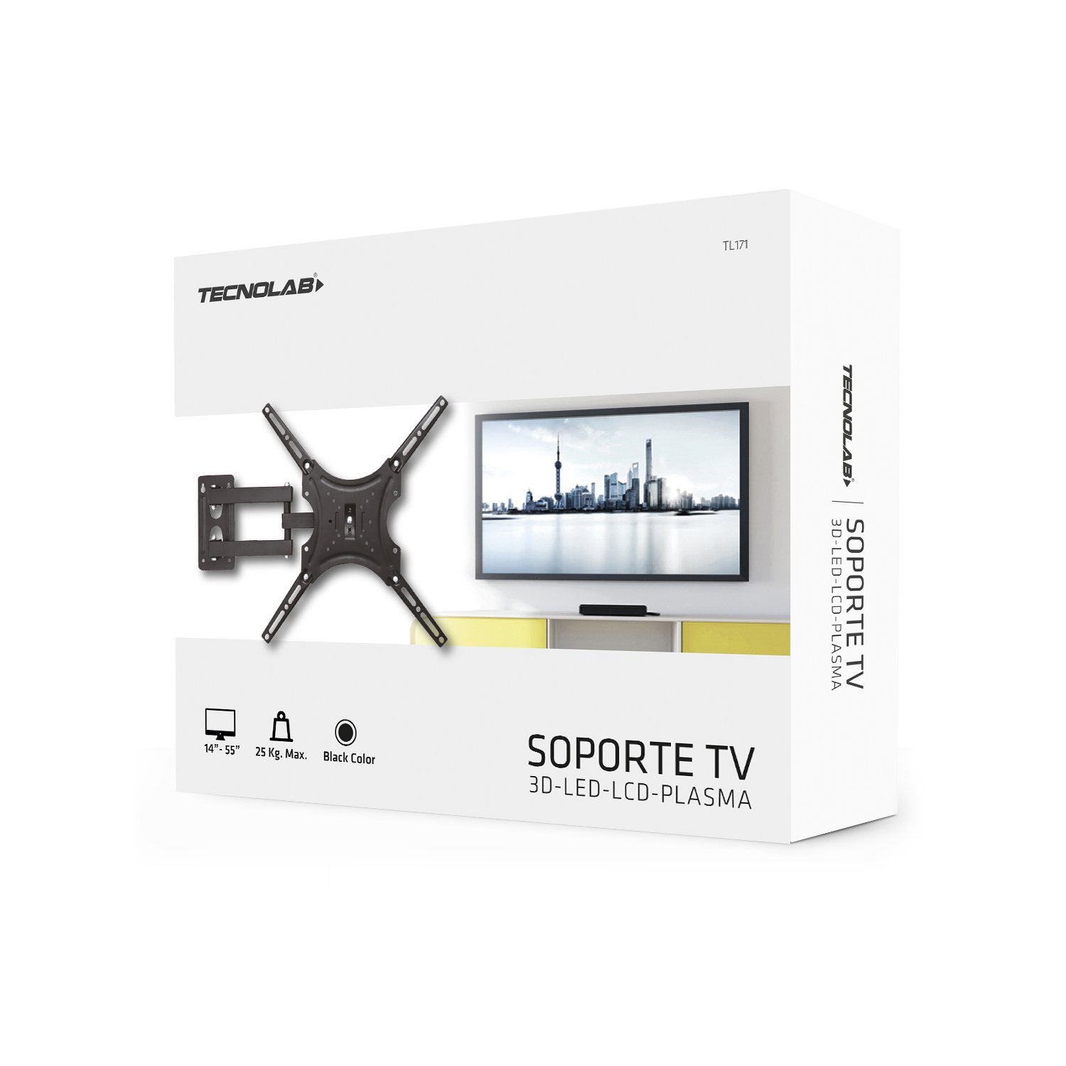 El soporte de TV Tecnolab con brazo articulado es la solución ideal para instalar tu televisor de forma segura y funcional. Compatible con pantallas LED, LCD, Plasma y 3D de 14” a 55”, soporta hasta 25 kg, ofreciendo estabilidad y resistencia en cualquier instalación.