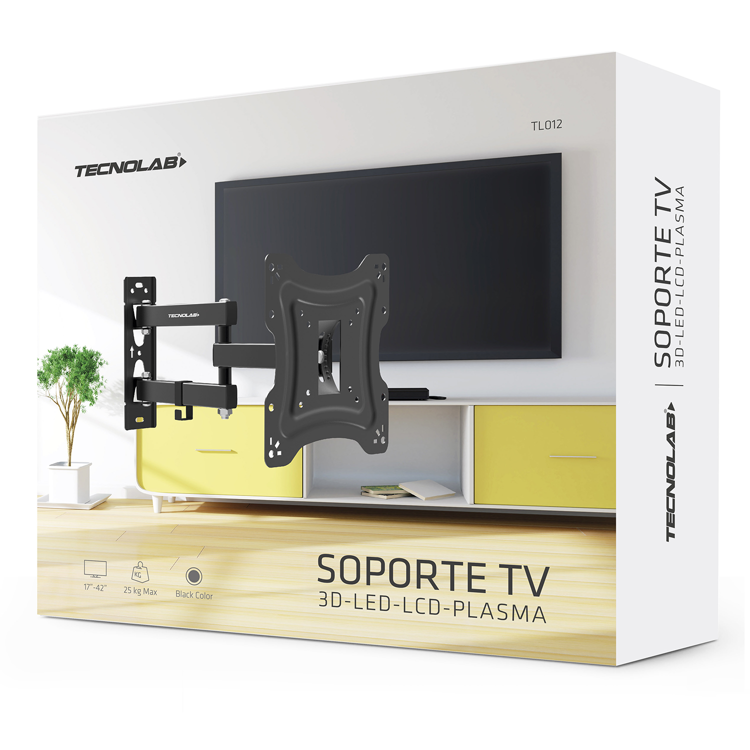 El soporte TV de 17 a 42 pulgadas con brazo, del fabricante tecnolab, permite una visión perfecta en cualquier ángulo. ofrece inclinación de +20 / -20 grados y giro de 180 grados. incluye manual de instrucciones y gestión de cables. peso máximo de carga 25kg.